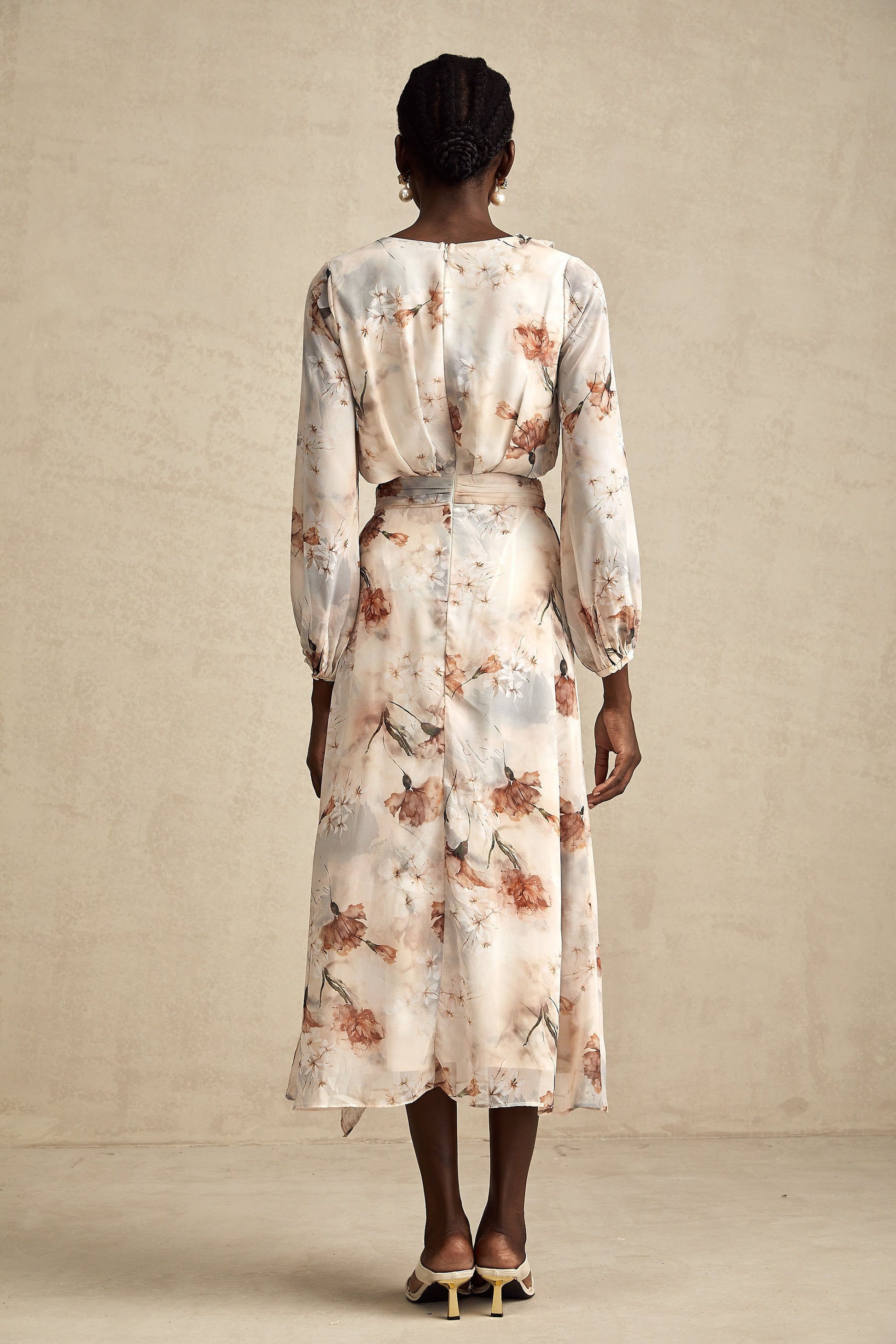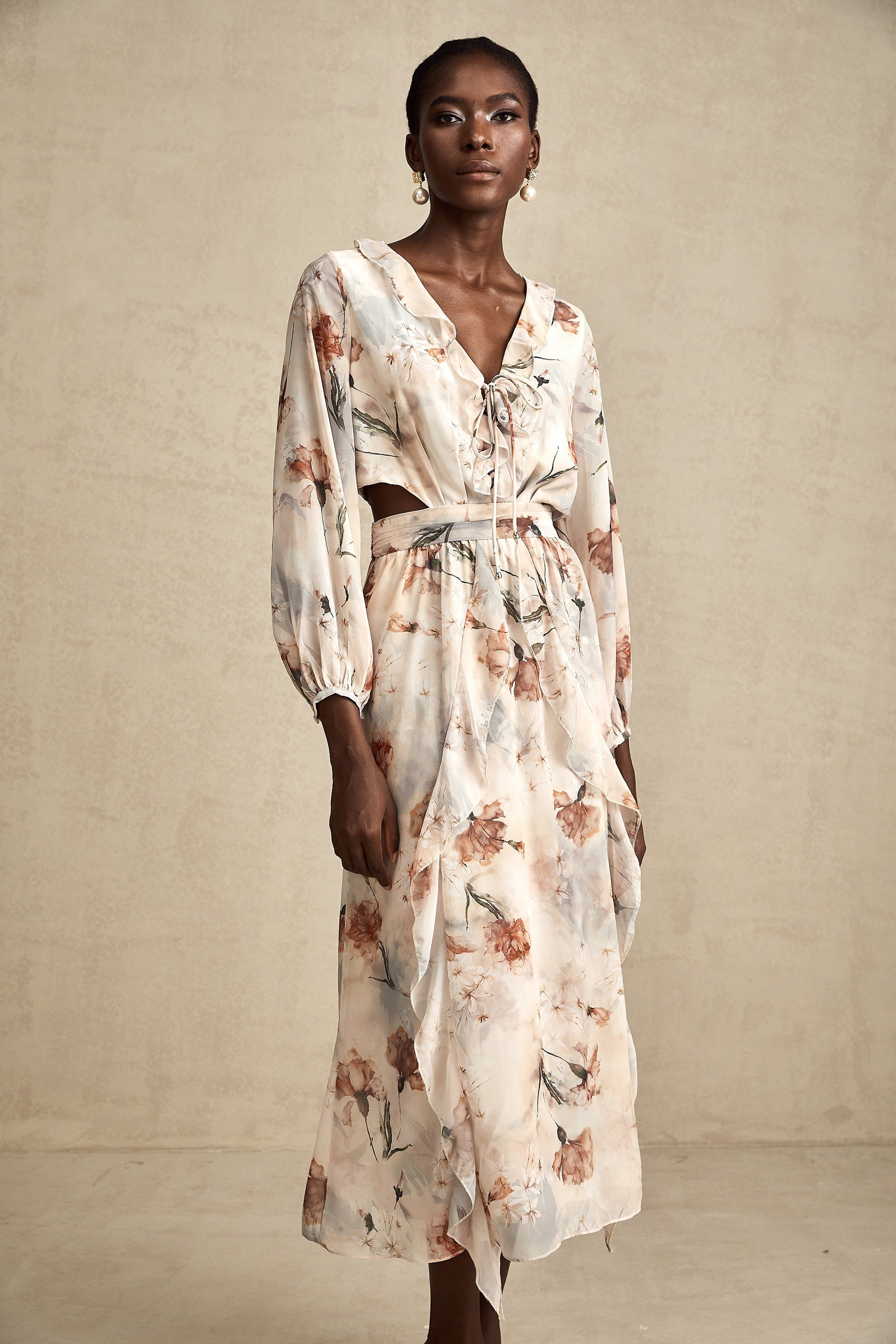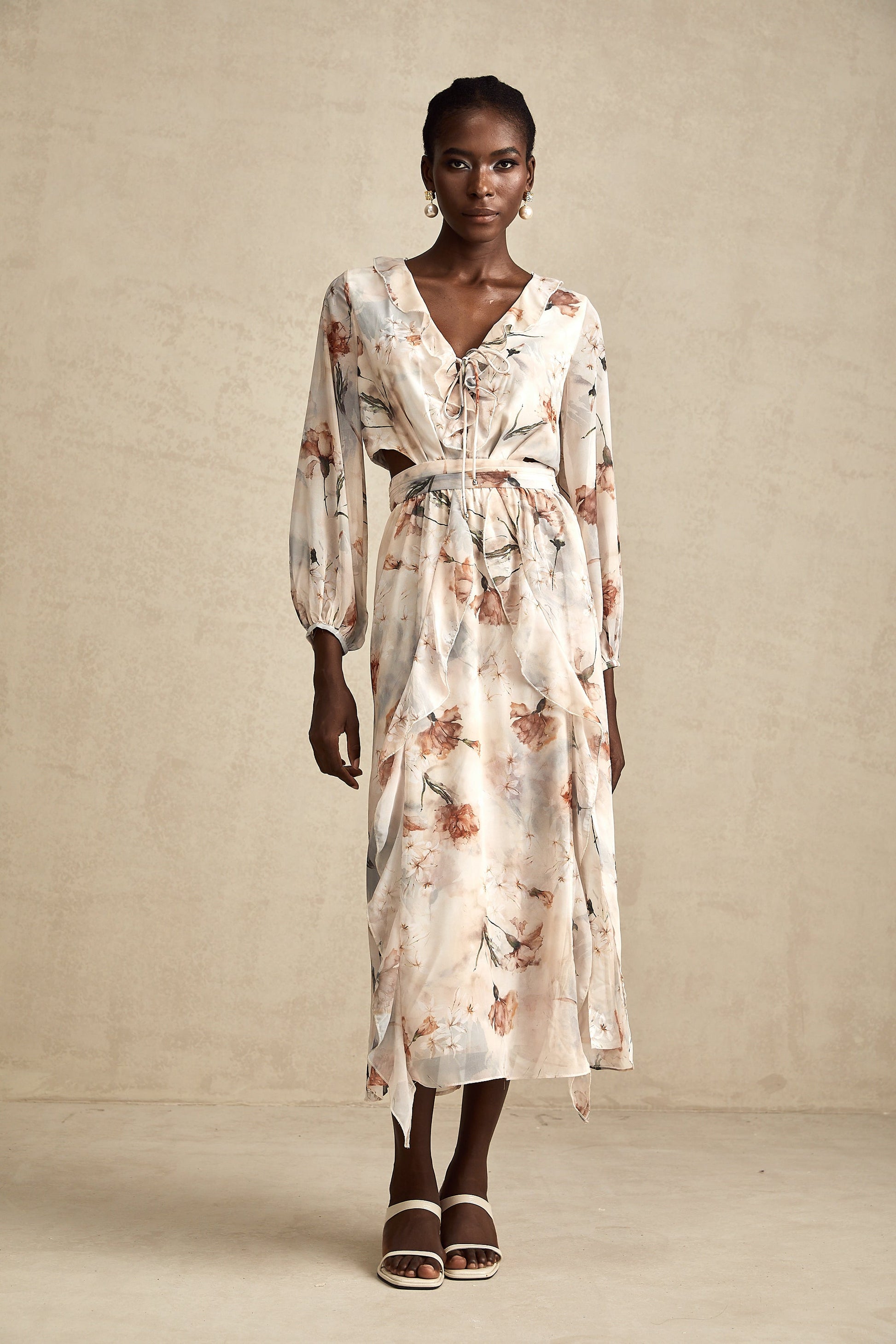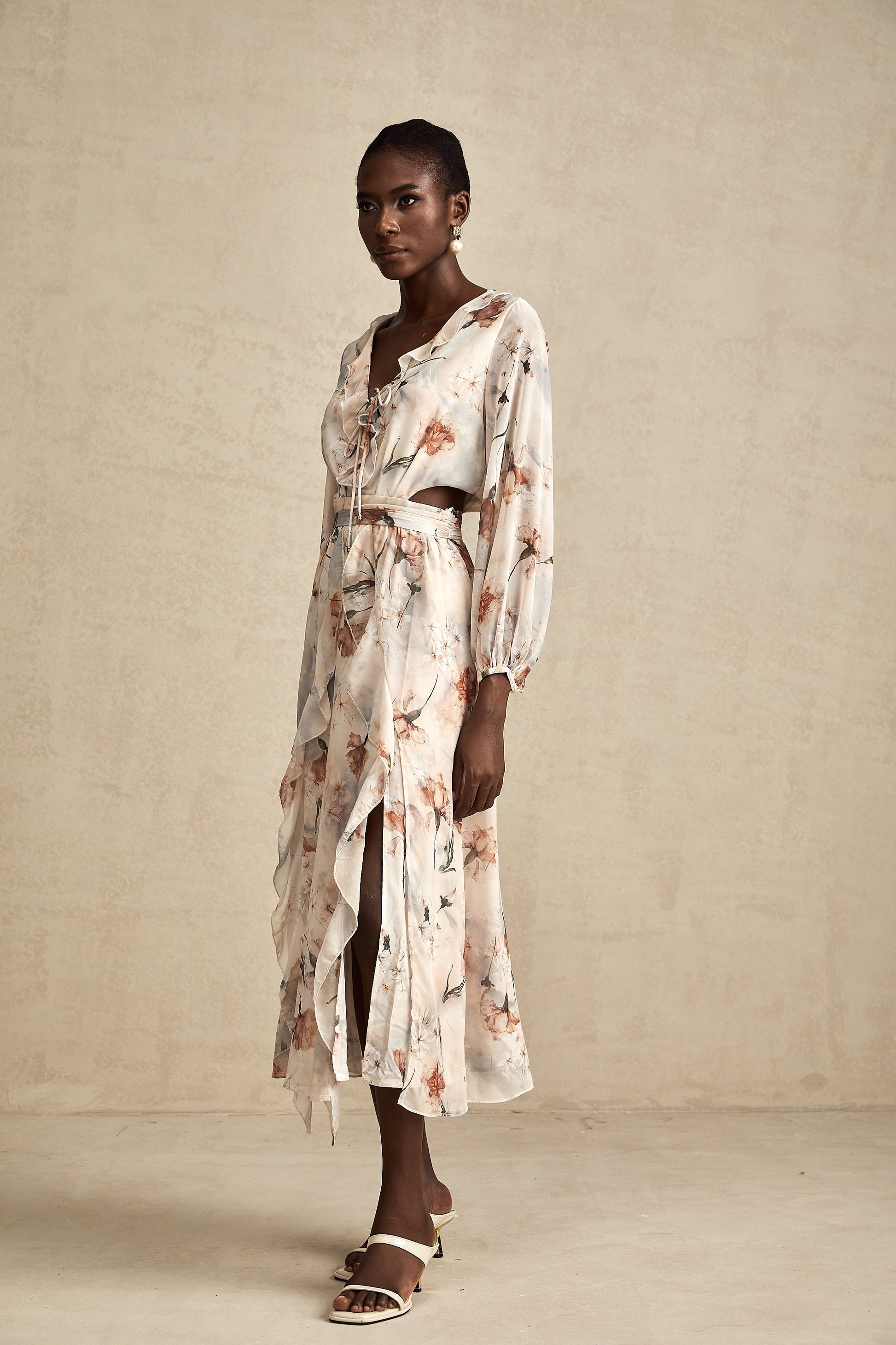 Bérengère floral-print open-waist midi dress