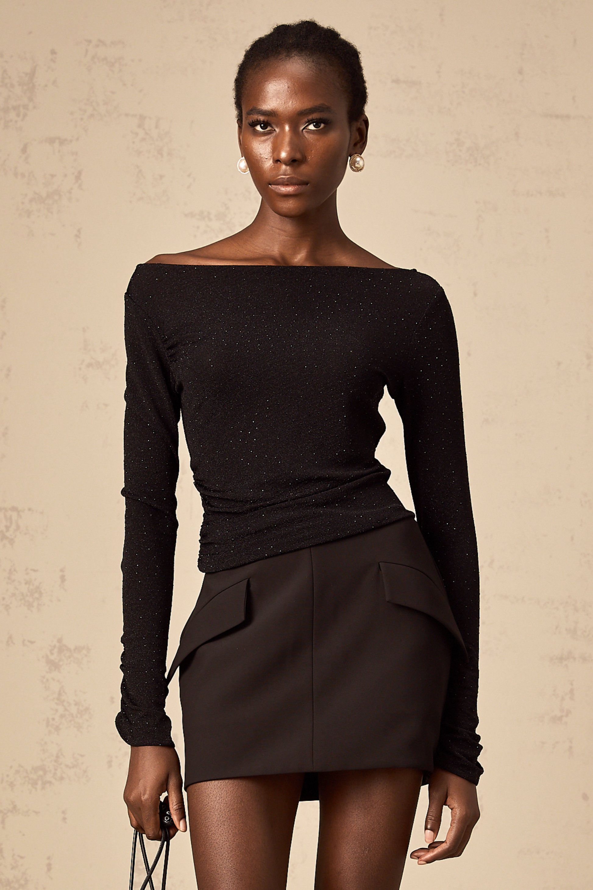 Bérénice black sequined top & skirt matching set