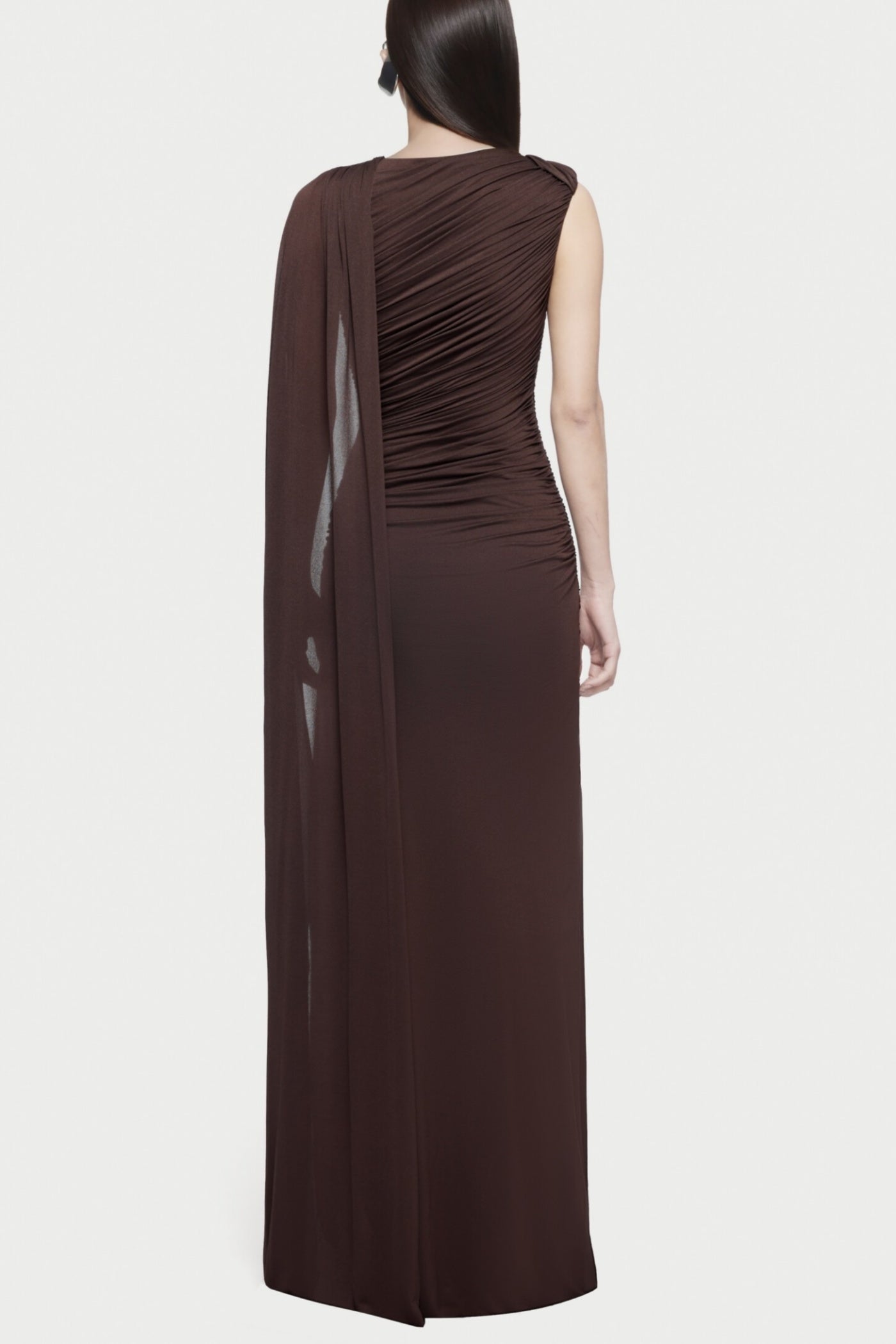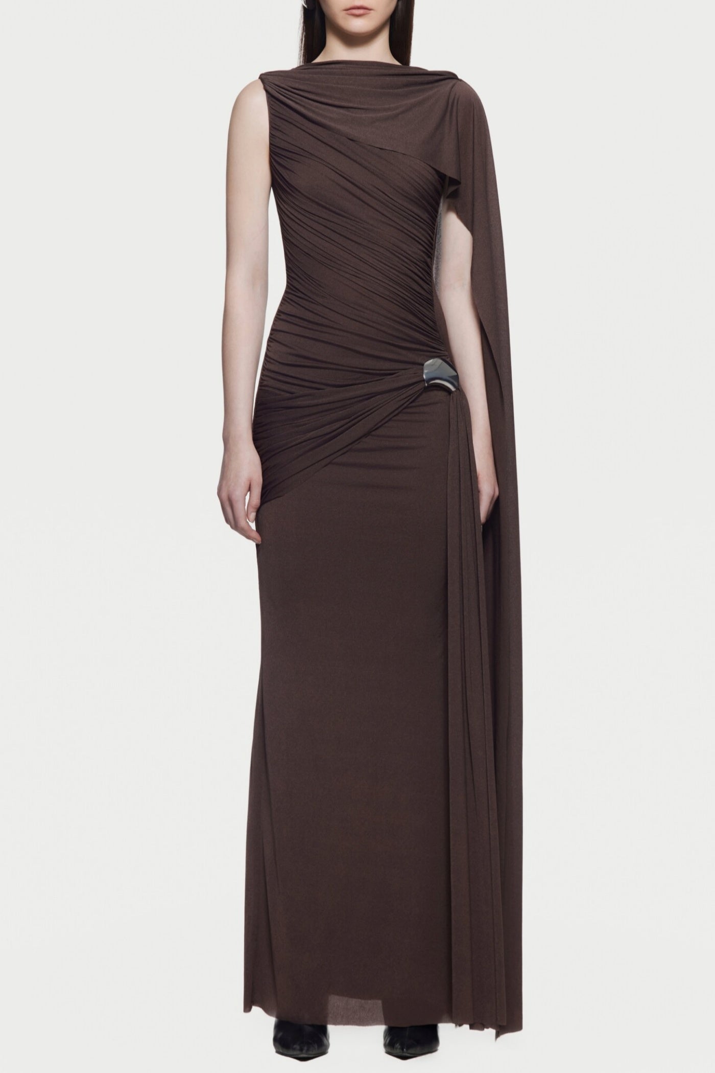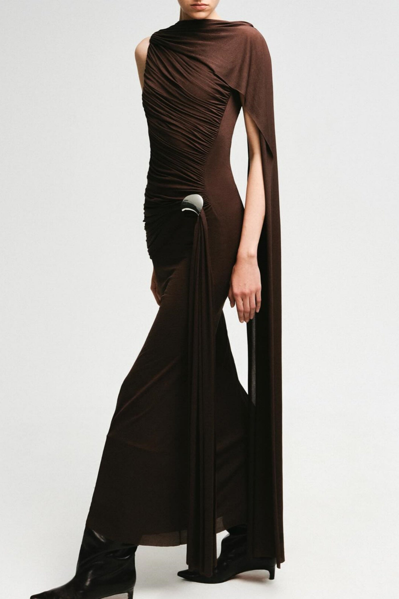 Betsey Asymmetrical Sleeveless Ruched Maxi Dress - Brown