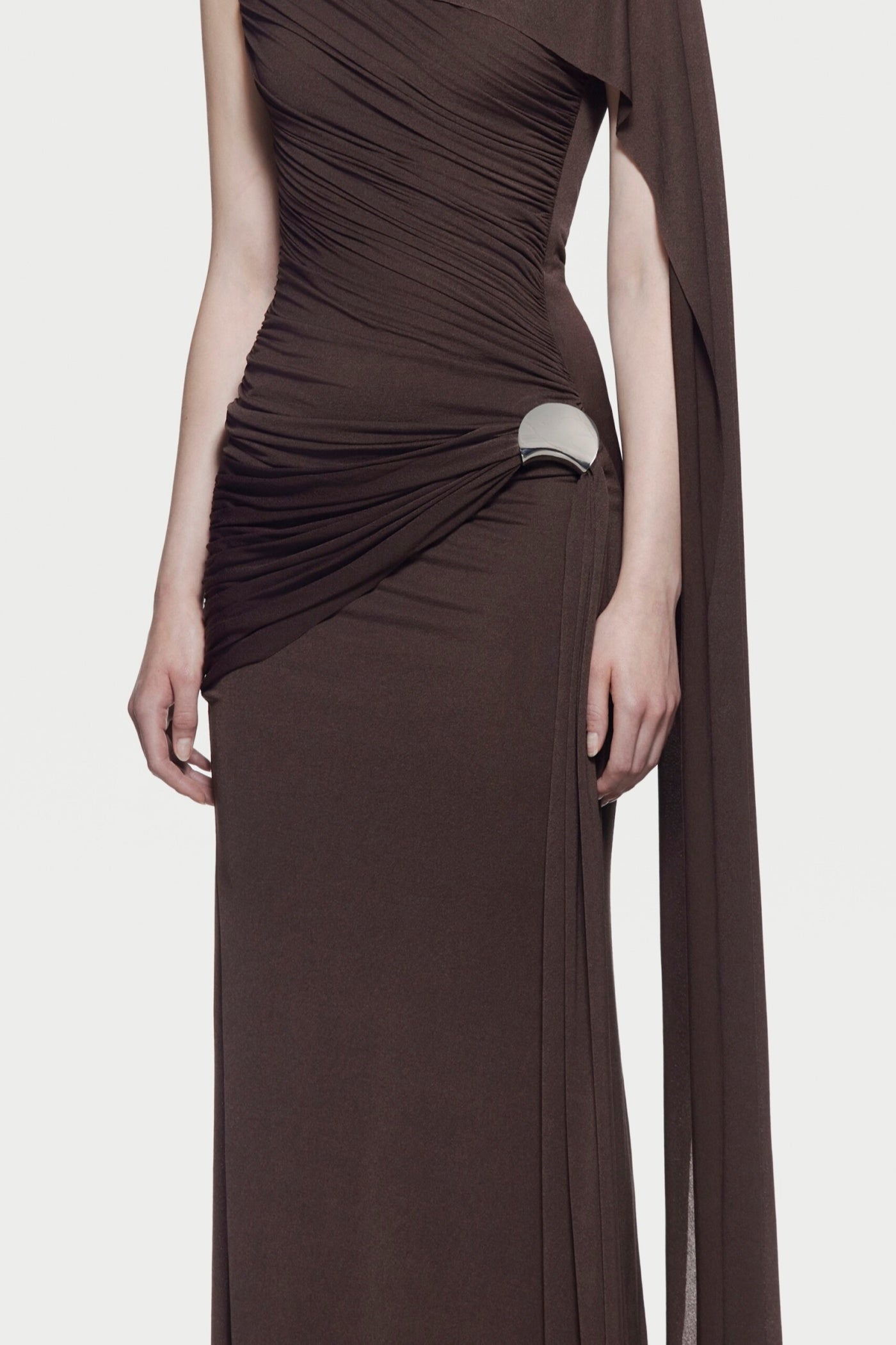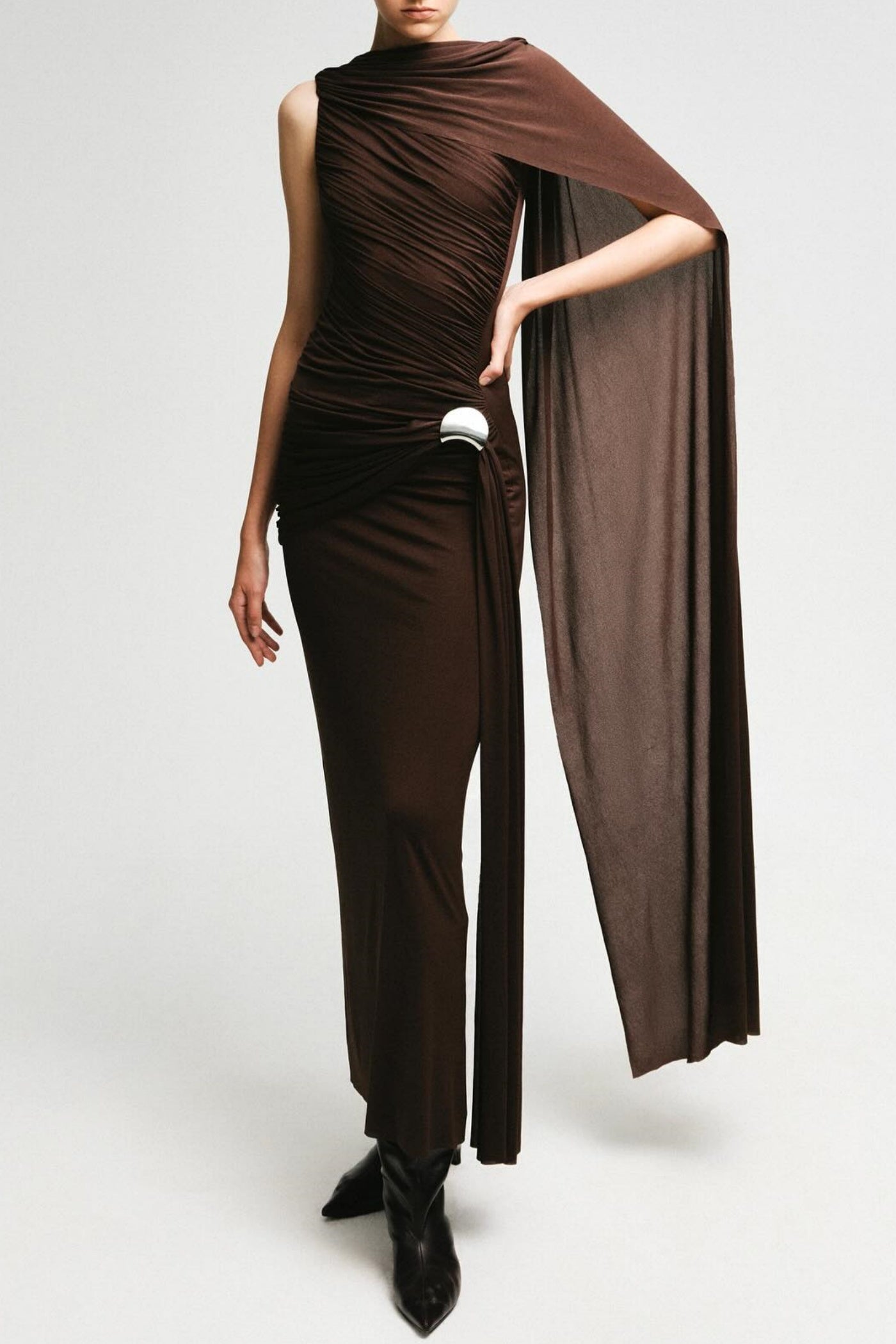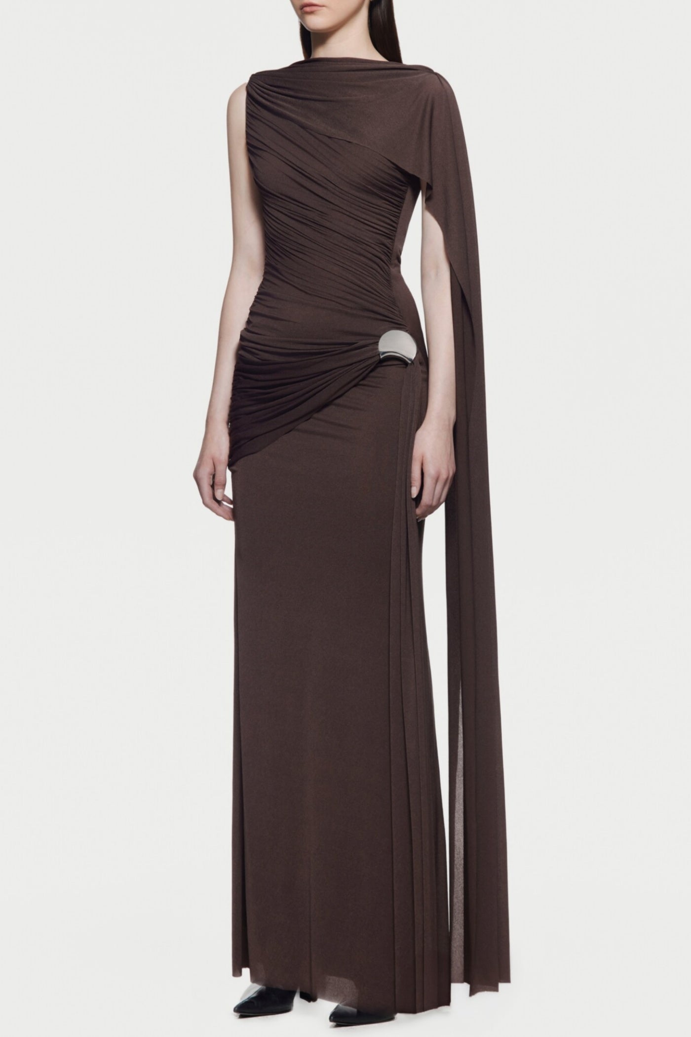 Betsey Asymmetrical Sleeveless Ruched Maxi Dress - Brown
