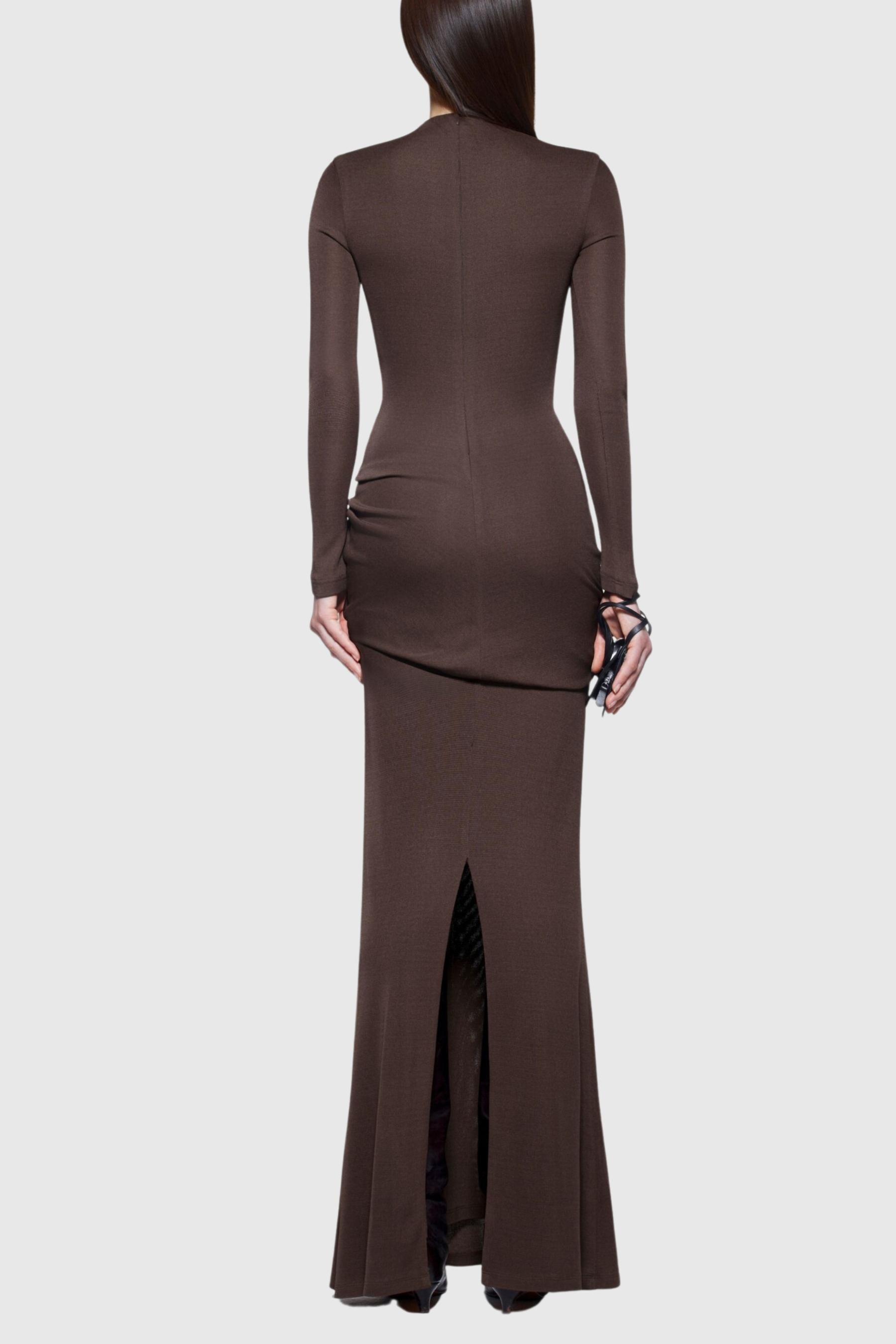 Betsey Dreaped Metal Embellished Maxi Dress - Brown
