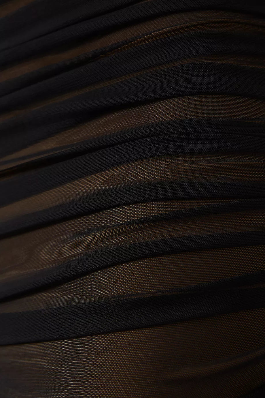 Cadhla Off Shoulder Ruched Mesh Maxi Dress