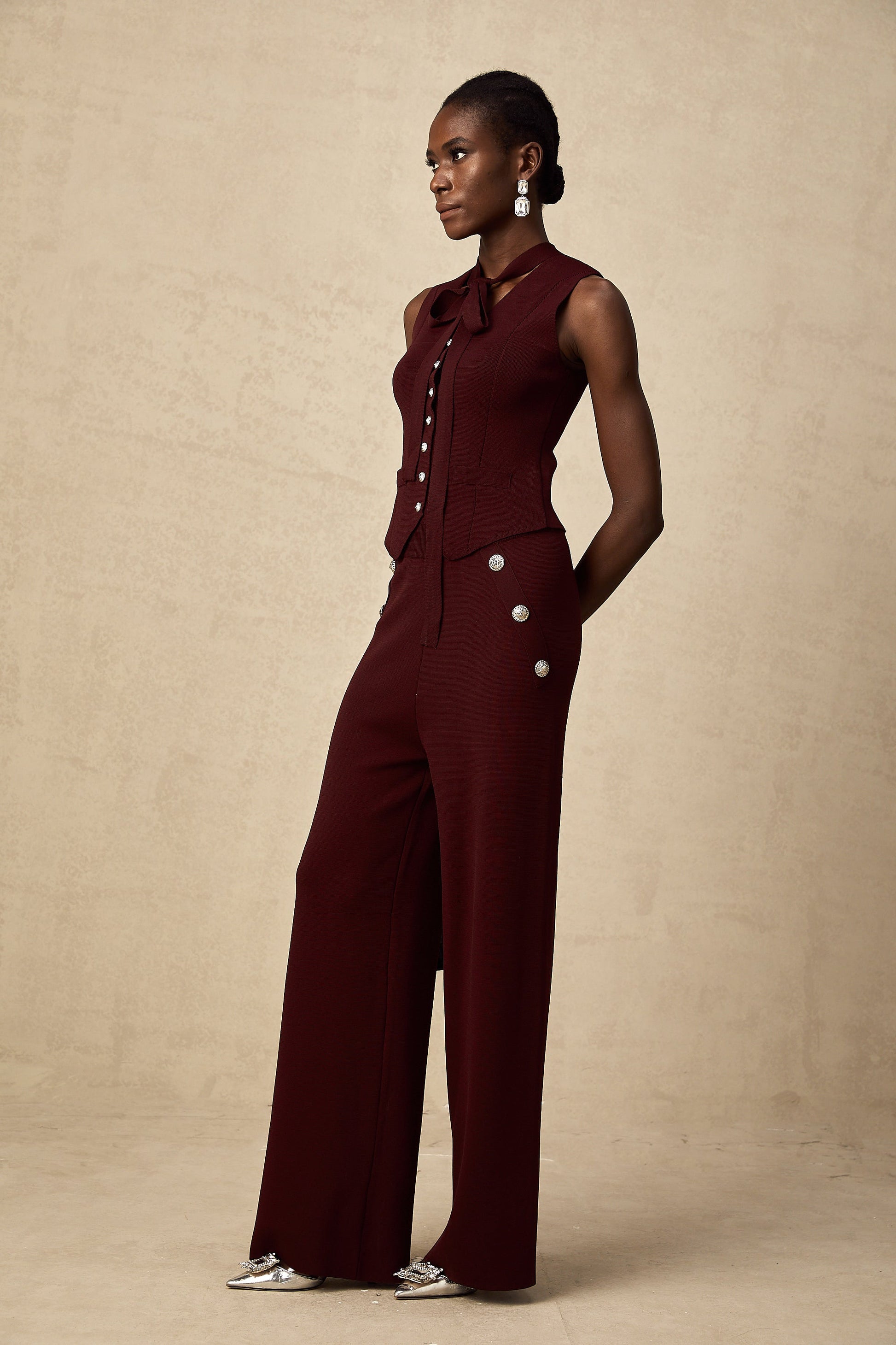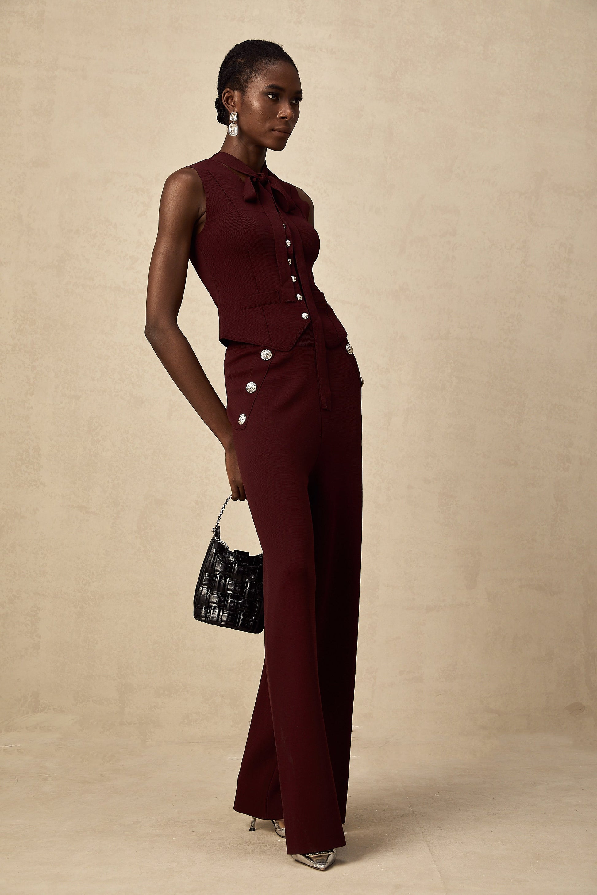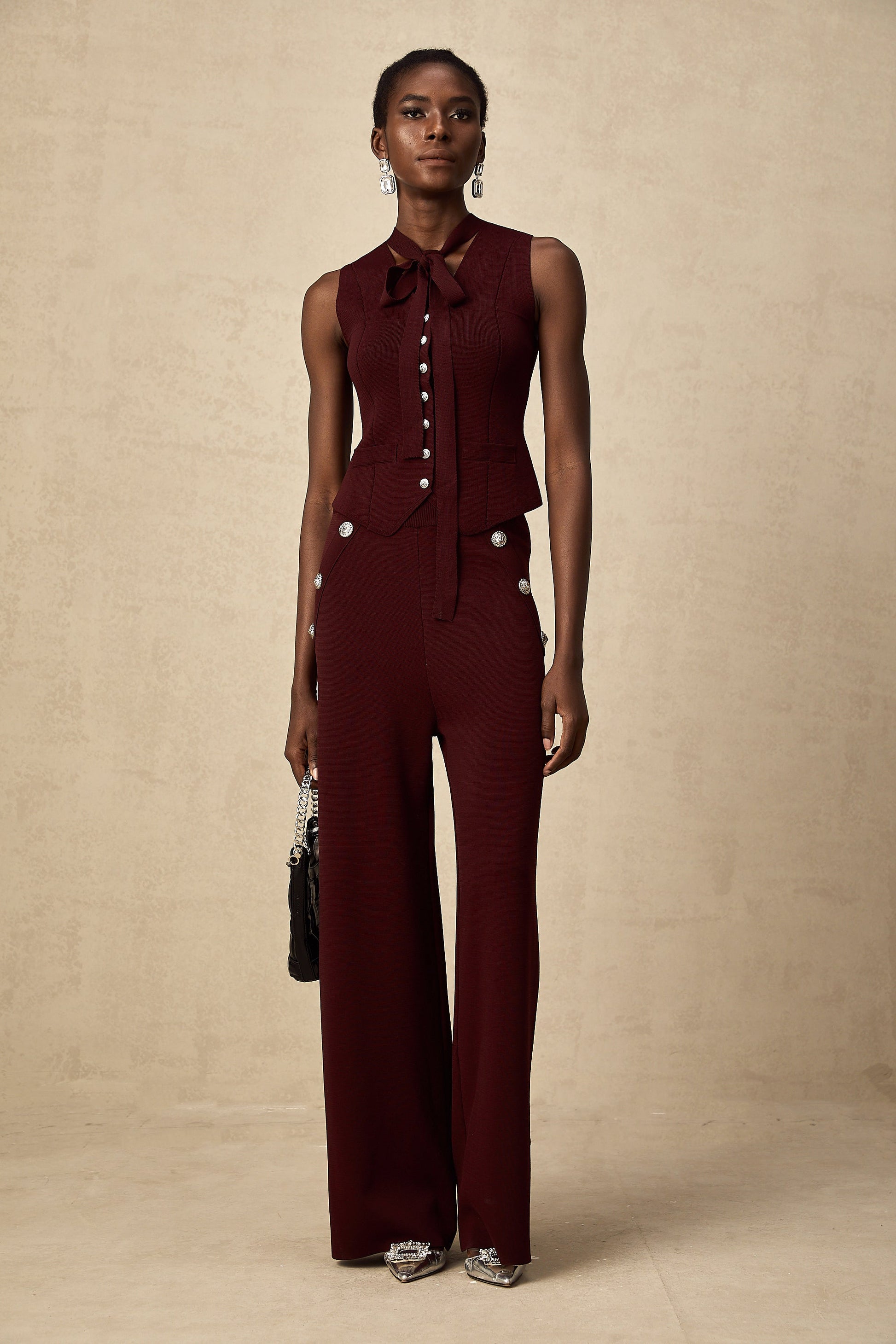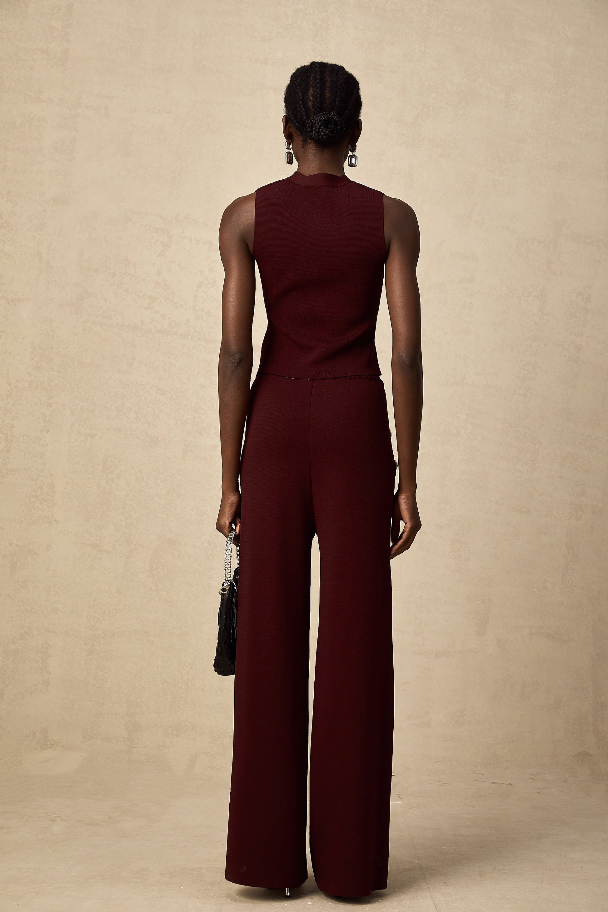 Calandra dark-red knitted vest & trousers matching set