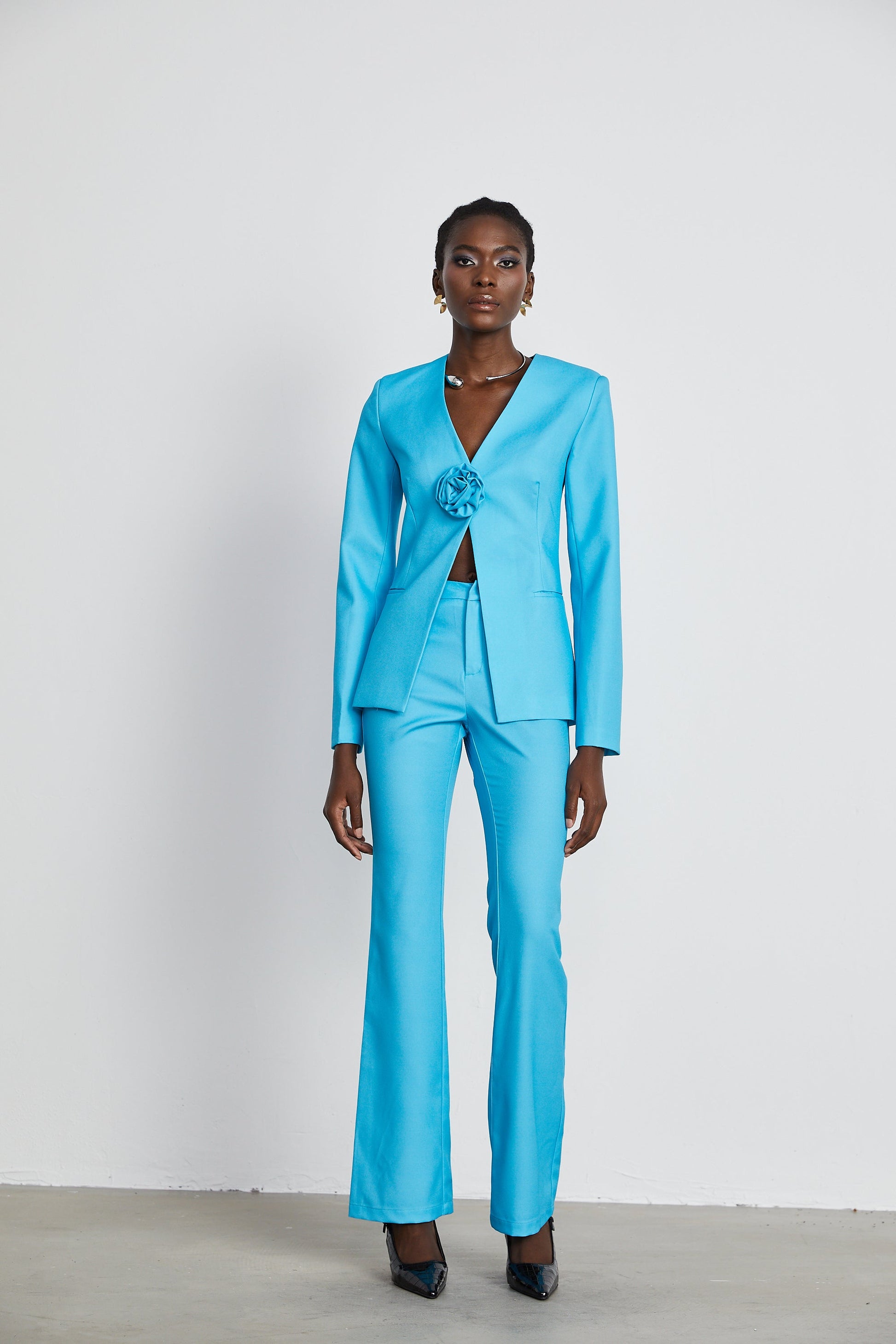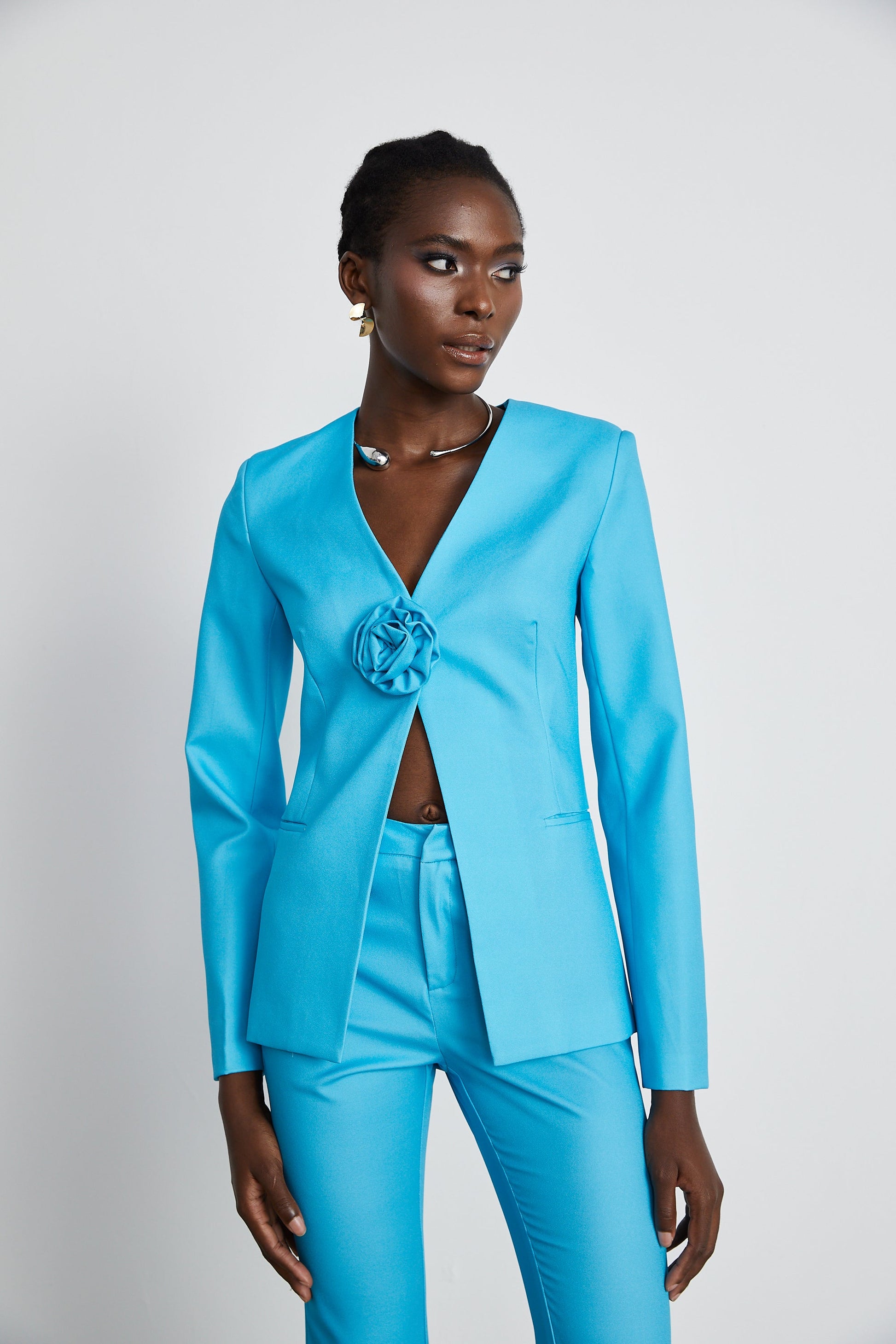 Cassandra floral satin jacket & trousers matching set