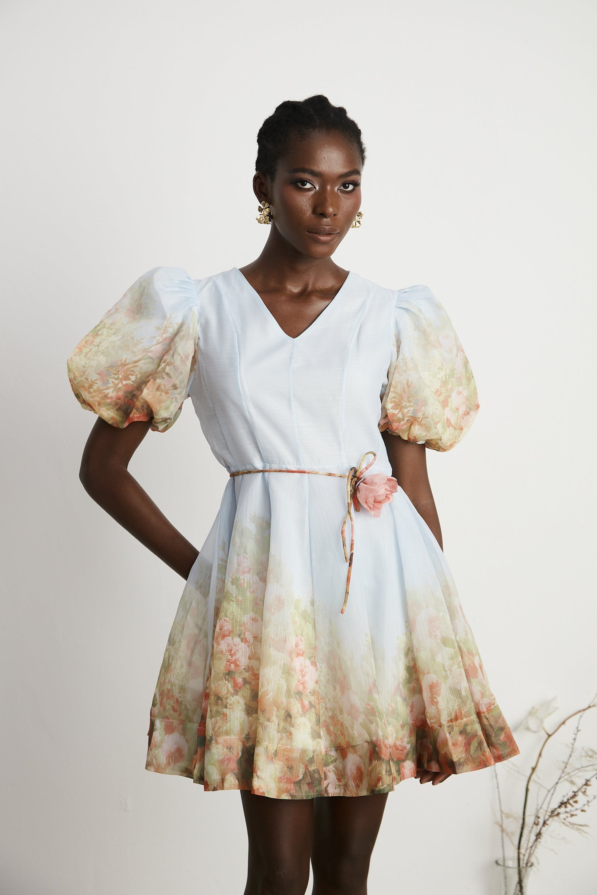Céleste faux-flower V-neck mini dress