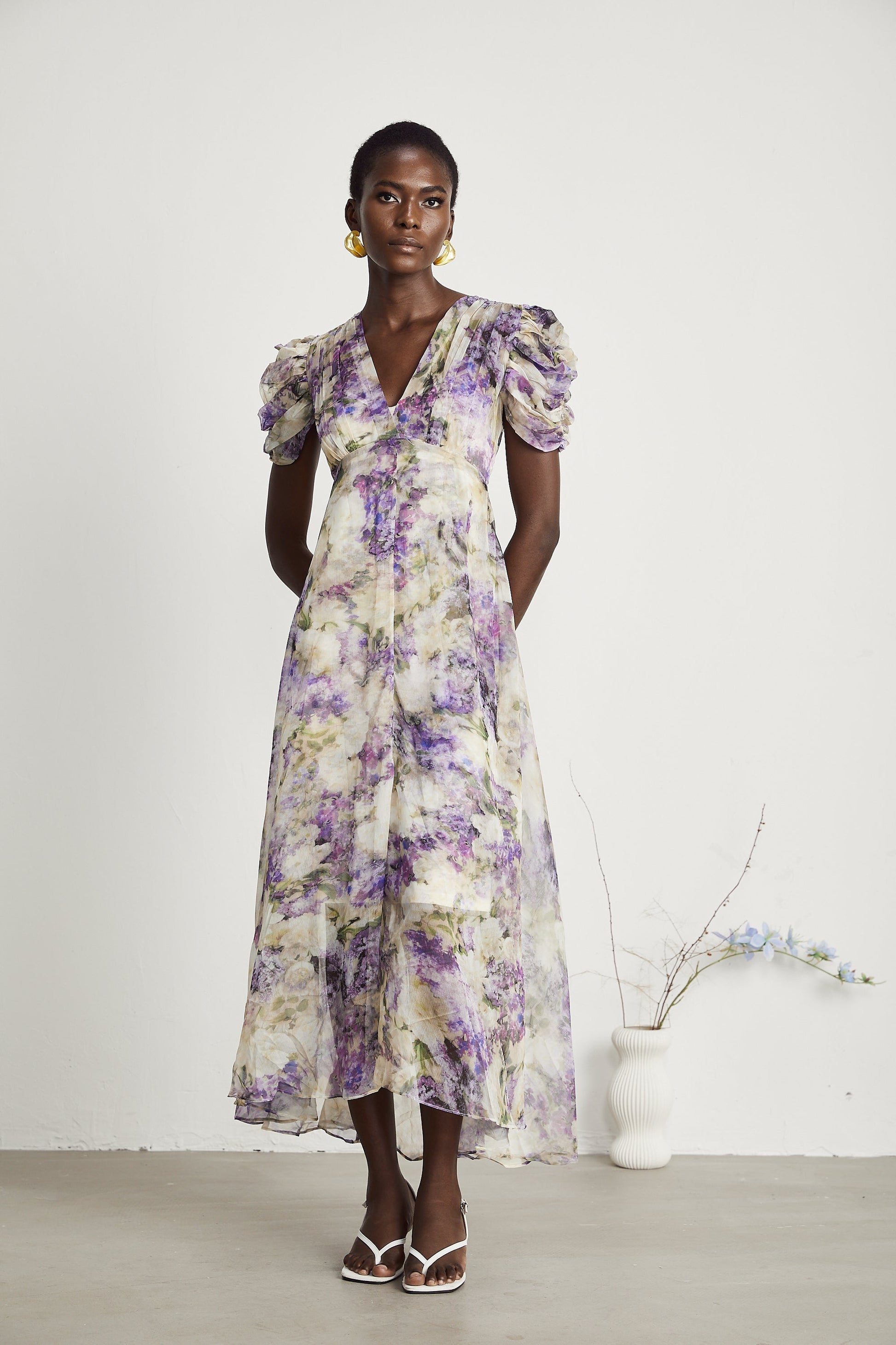 Chantal floral-print semi-sheer midi dress