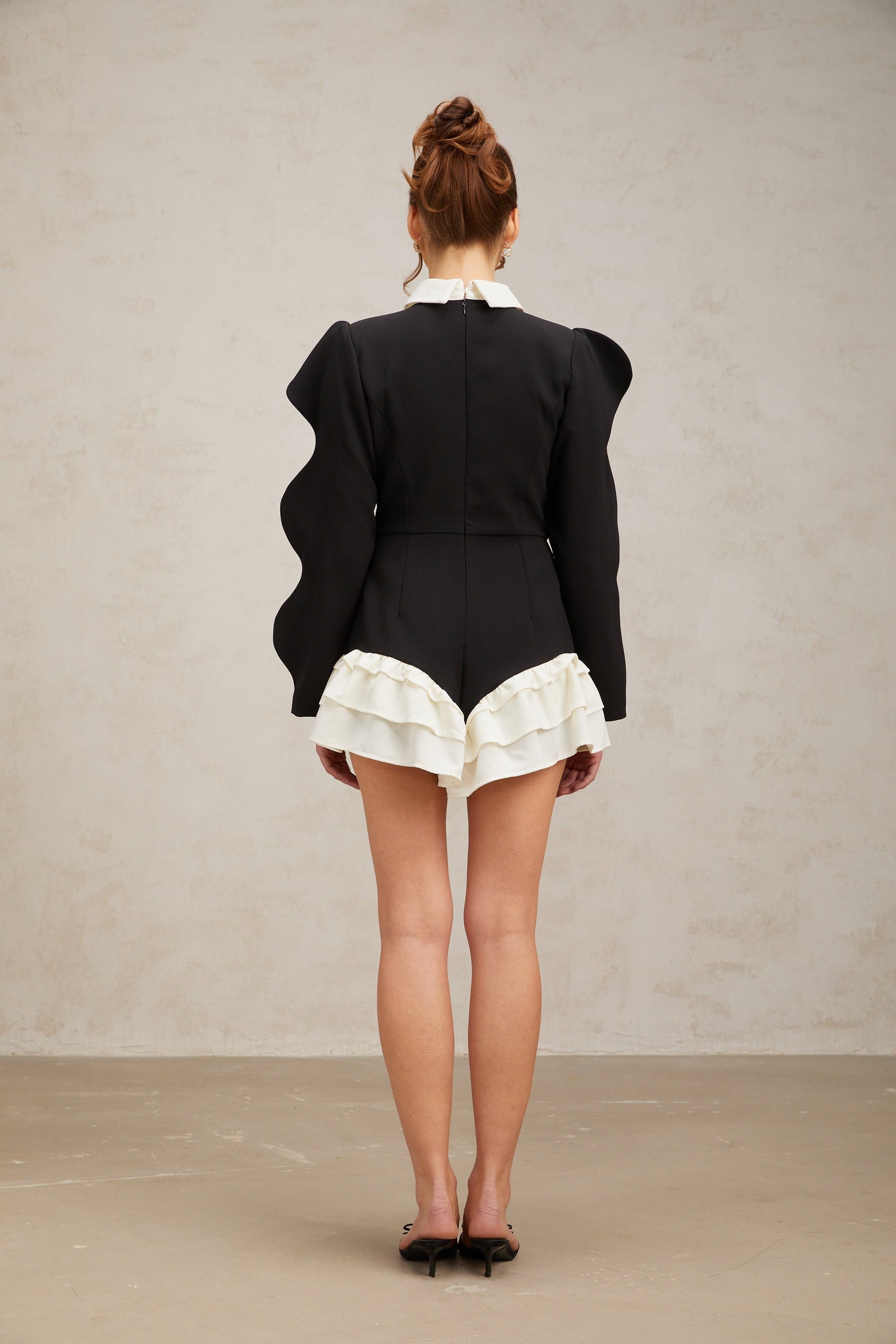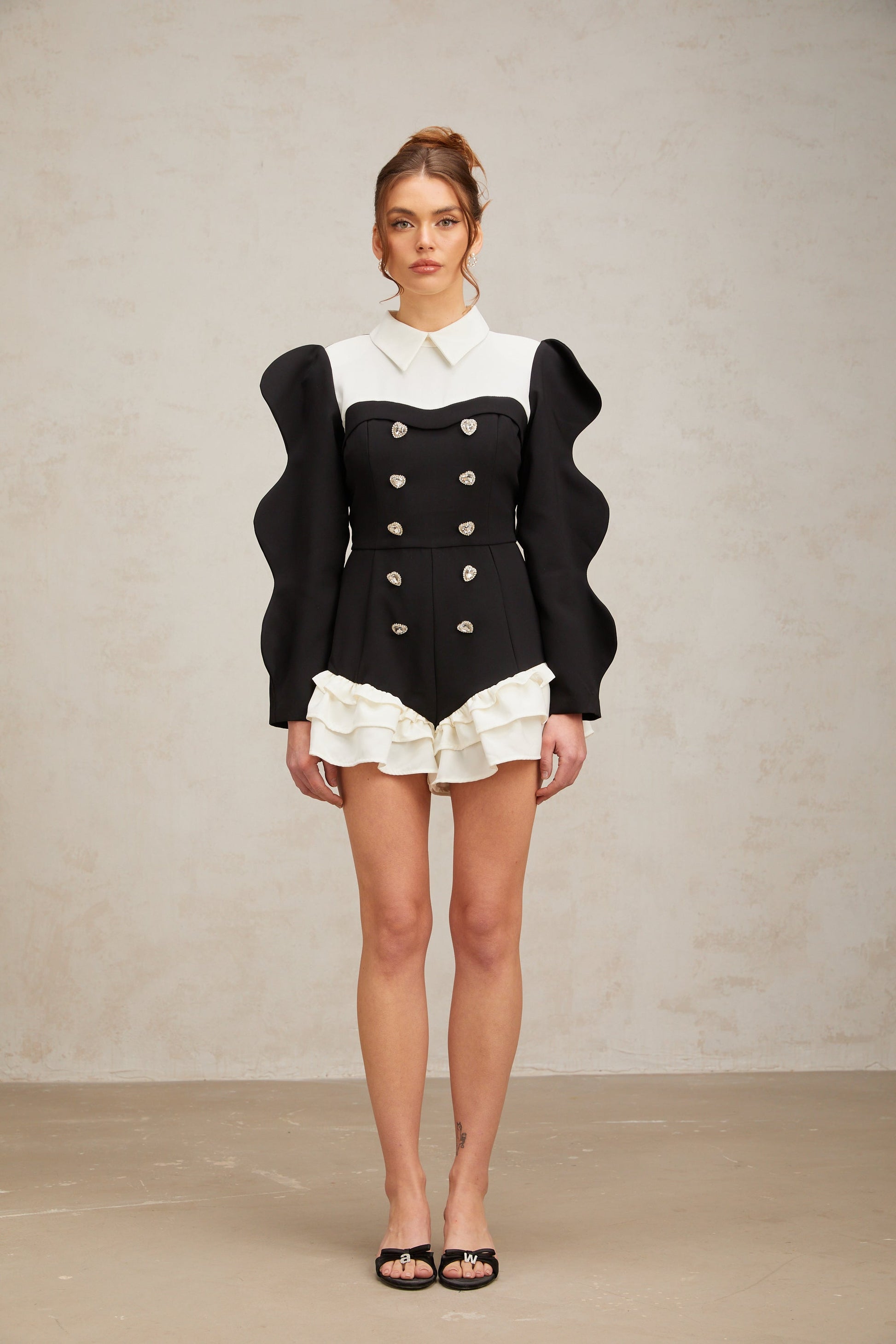 Chloe color-blocked heart-shaped-button ruffled bodysuit