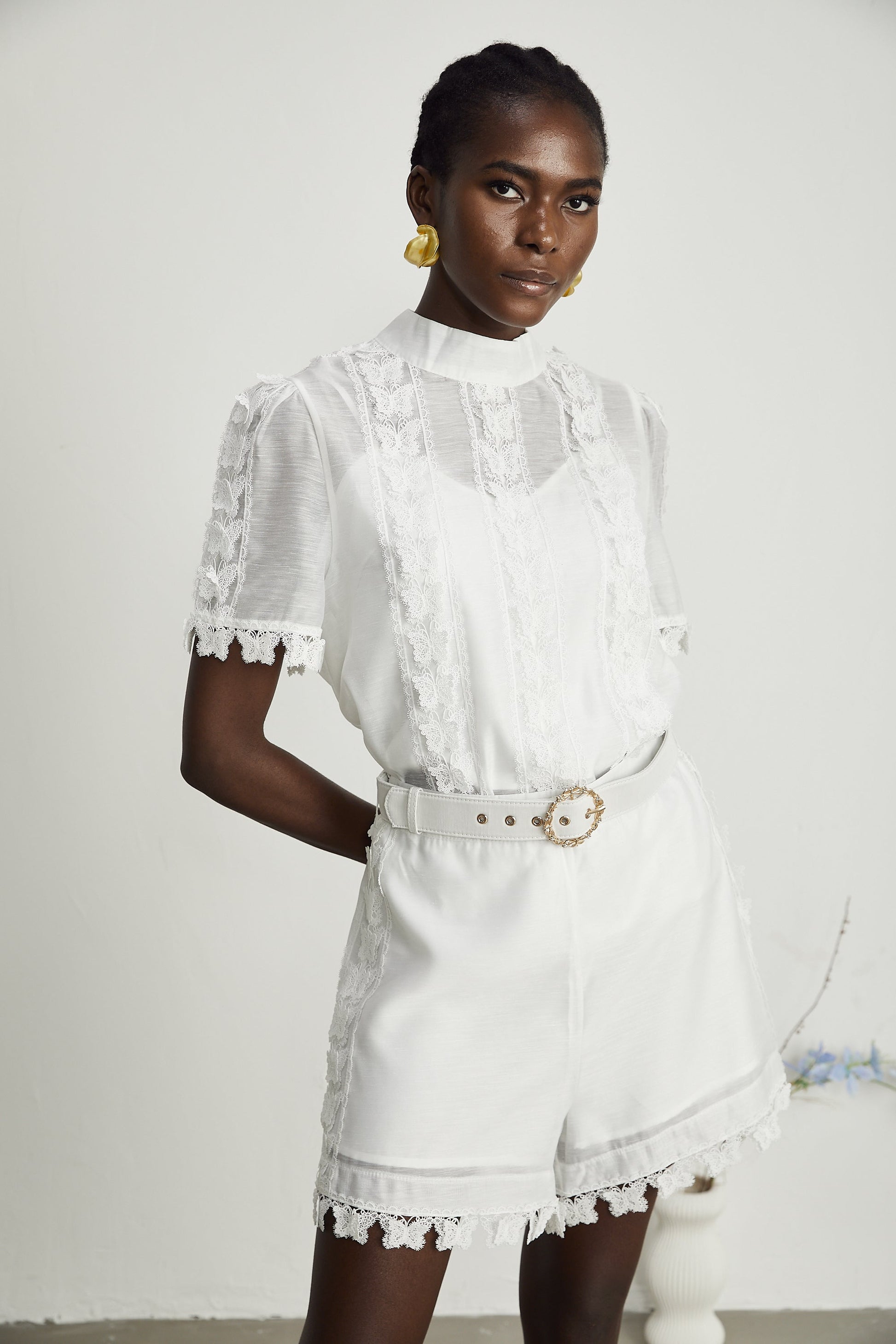 Chloé lace-butterfly embroidered top & shorts matching set