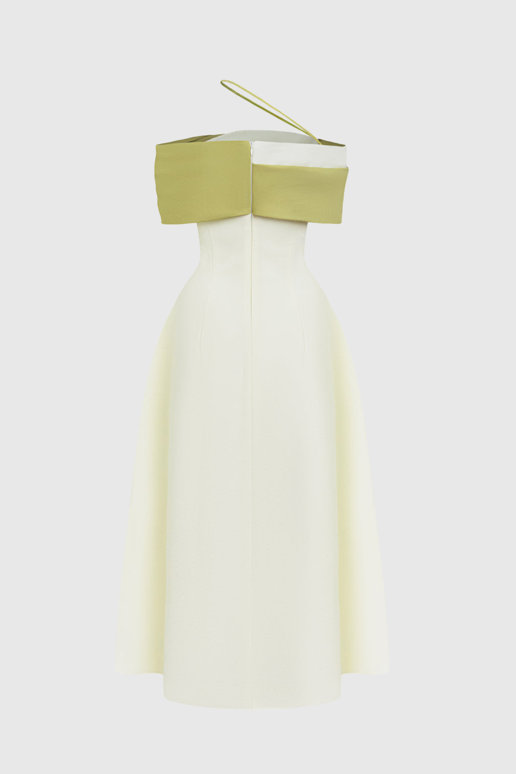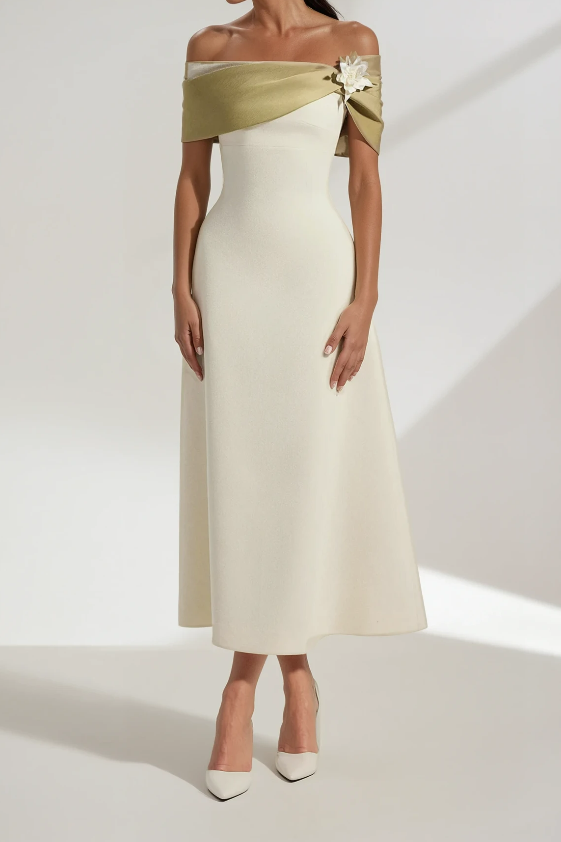 Cicek Floral Appliqué Off Shoulder Midi Dress