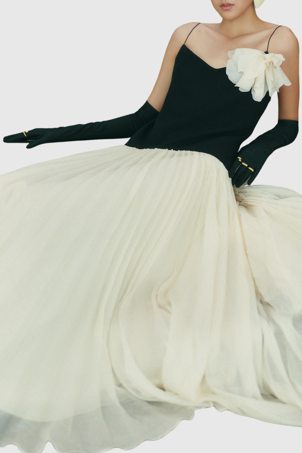 Indulge in femininity with the Cinzia Flower Pleated Maxi Dress. This beautifully crafted dress features delicate pleats and a striking flower print, evoking a sense of romance and elegance. Its flowy silhouette and soft fabric will make you feel like a true goddess, perfect for any special occasion.