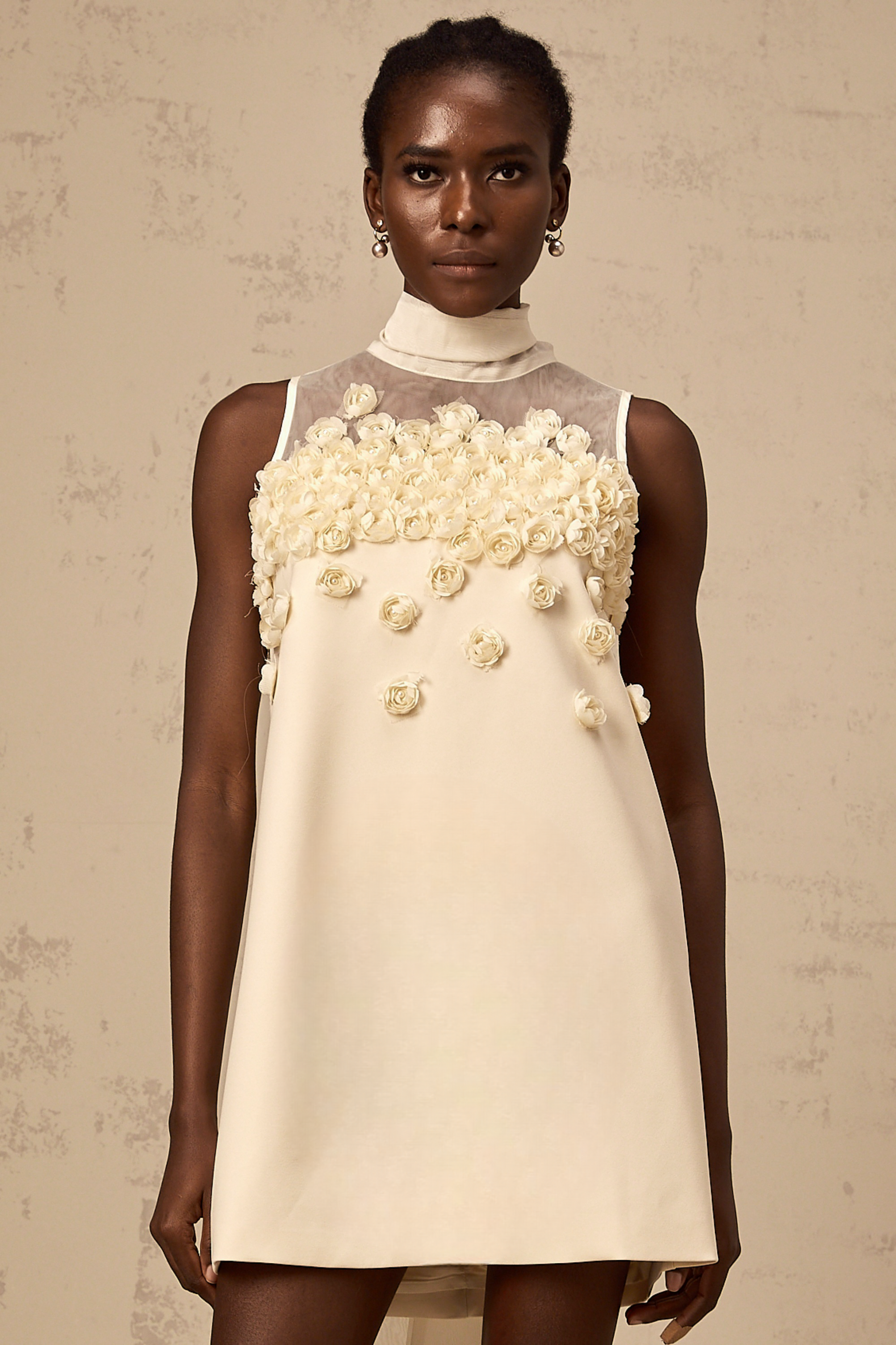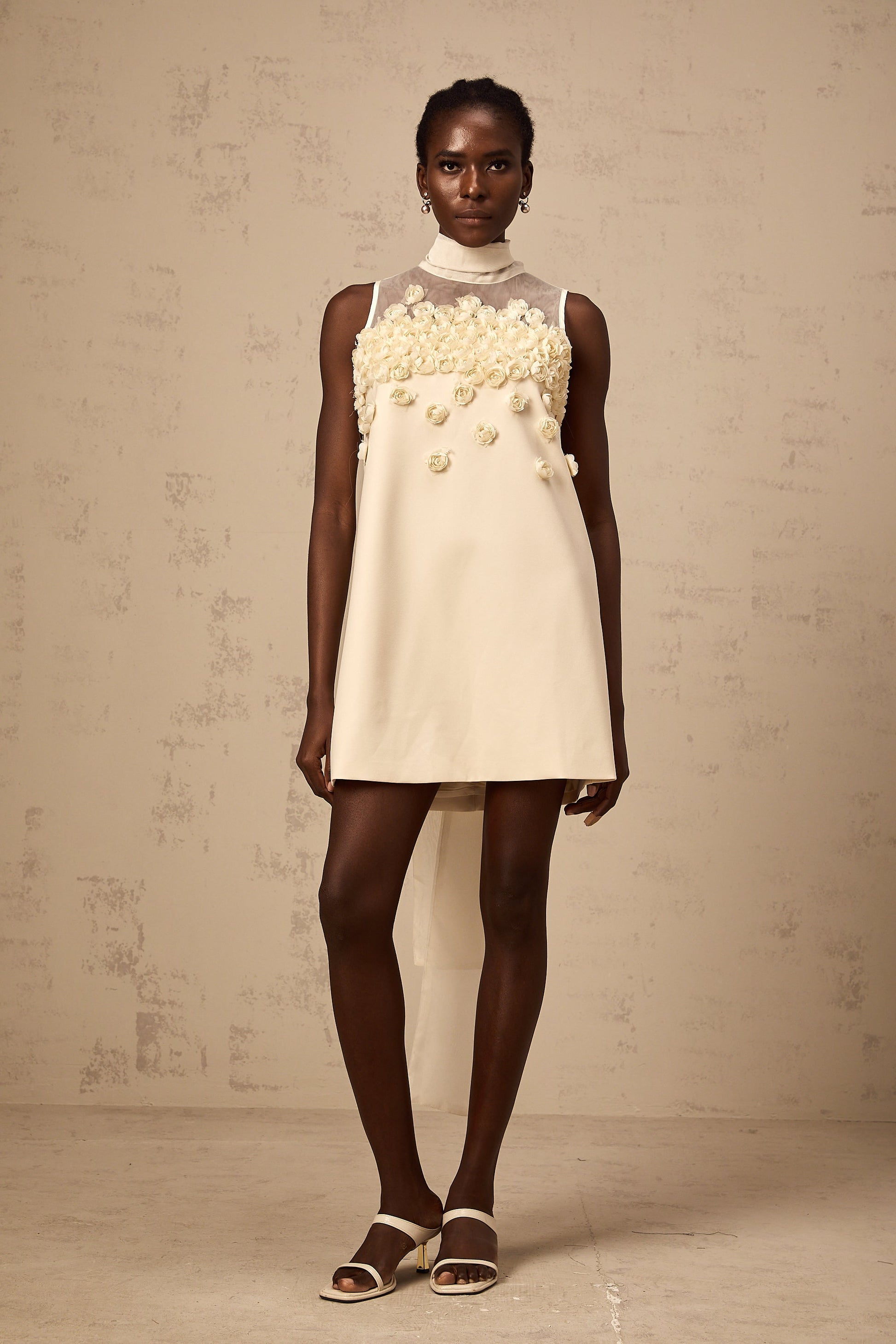 Claire faux-flower sleeveless mini dress