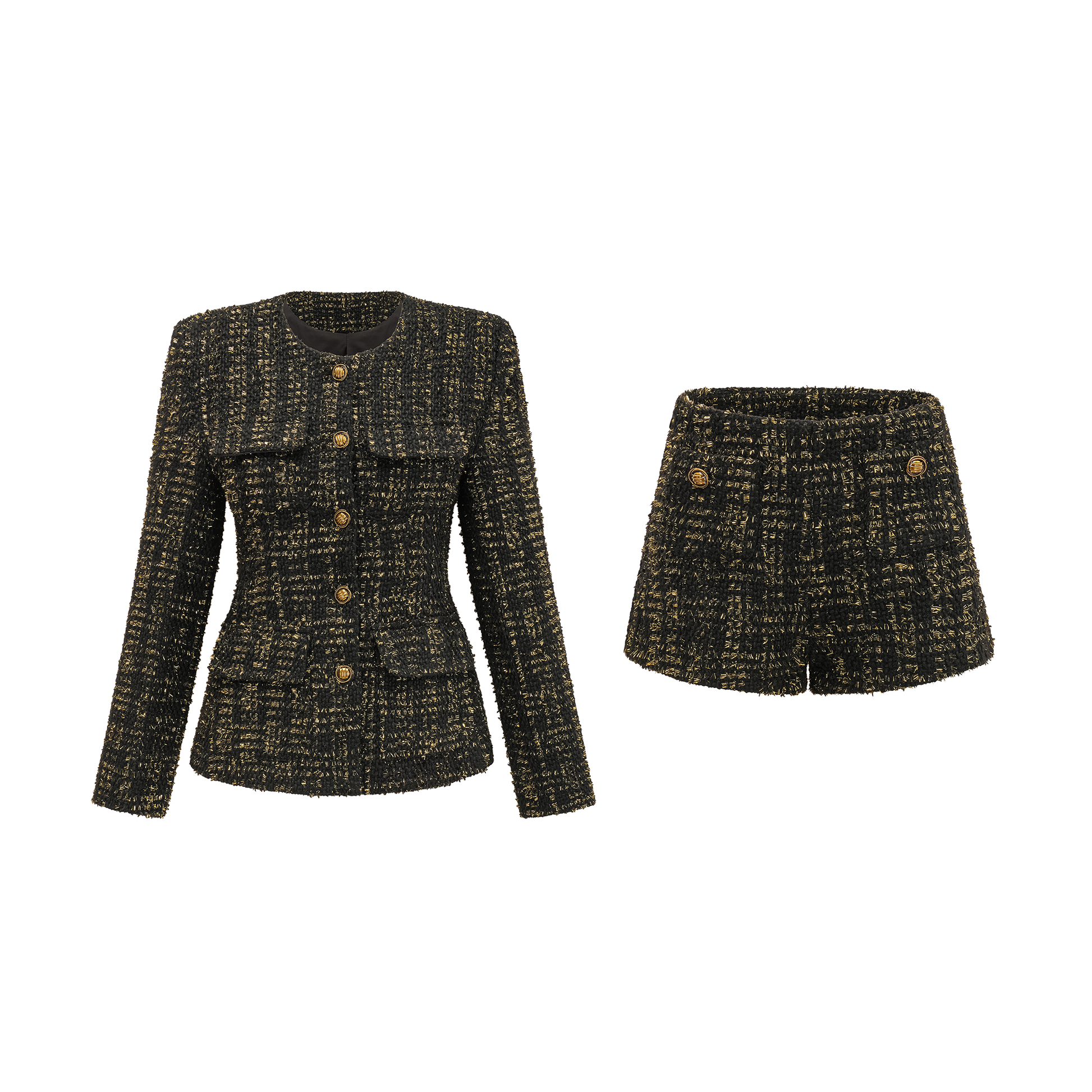 Claudine black metallic tweed jacket & shorts matching set