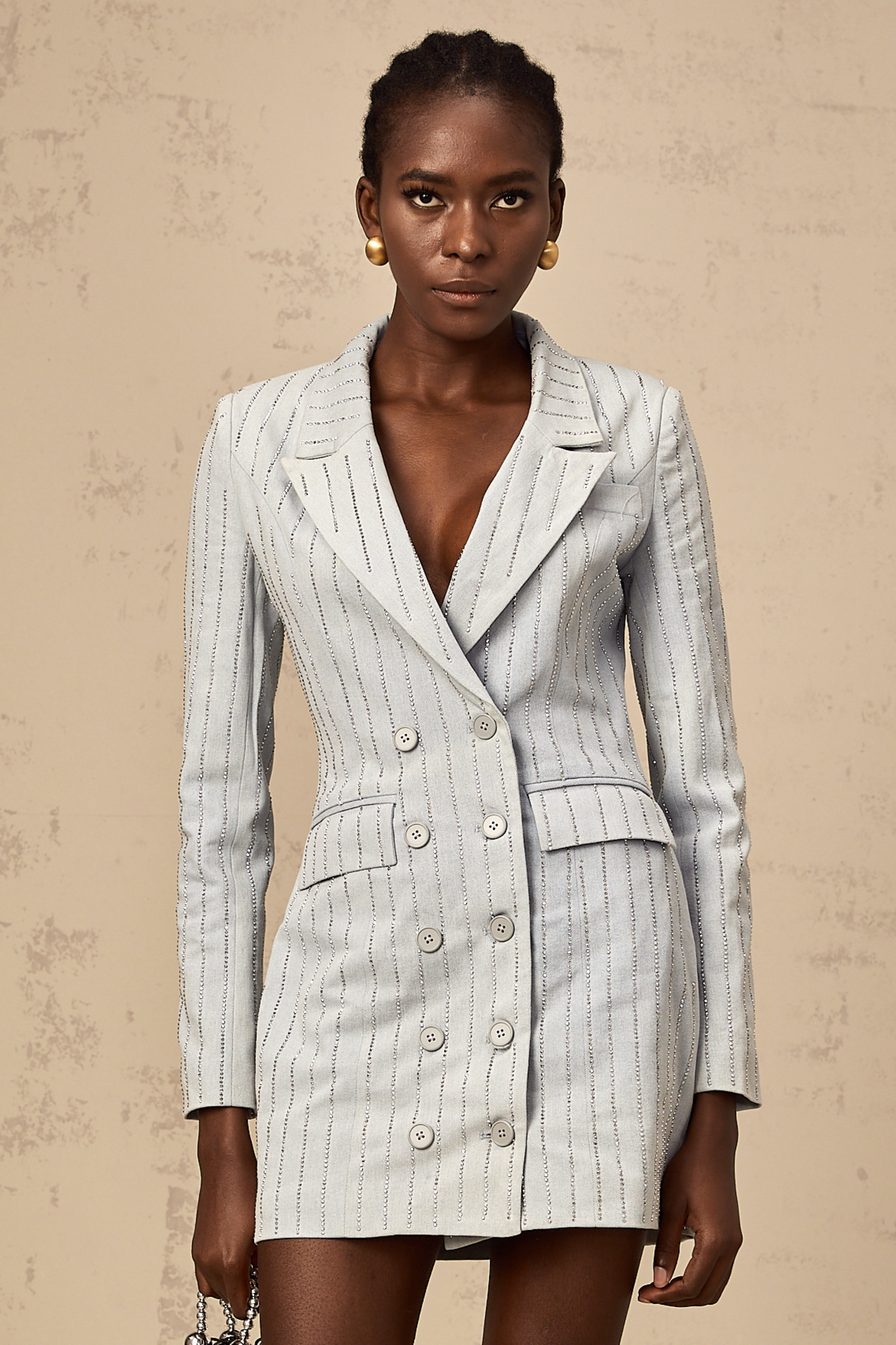 Constance blue rhinestone denim mini blazer dress