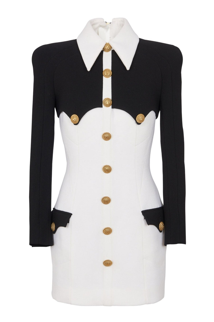 Enhance your wardrobe with the Delpha Gold Buttond Mini Dress. This elegant long sleeve dress features luxurious gold buttons that add a touch of sophistication to any occasion. With its mini length, it is the perfect combination of style and comfort, making it a must-have for any fashion-forward individual. Elevate your look with this premium dress and make a statement wherever you go.