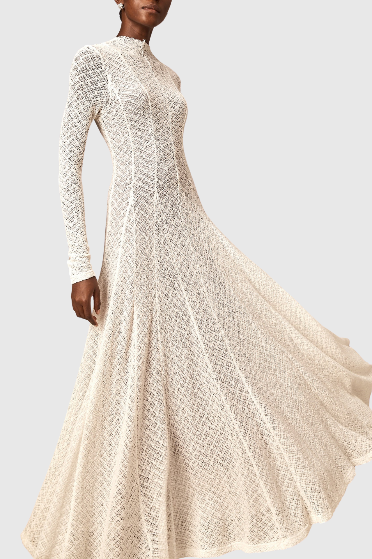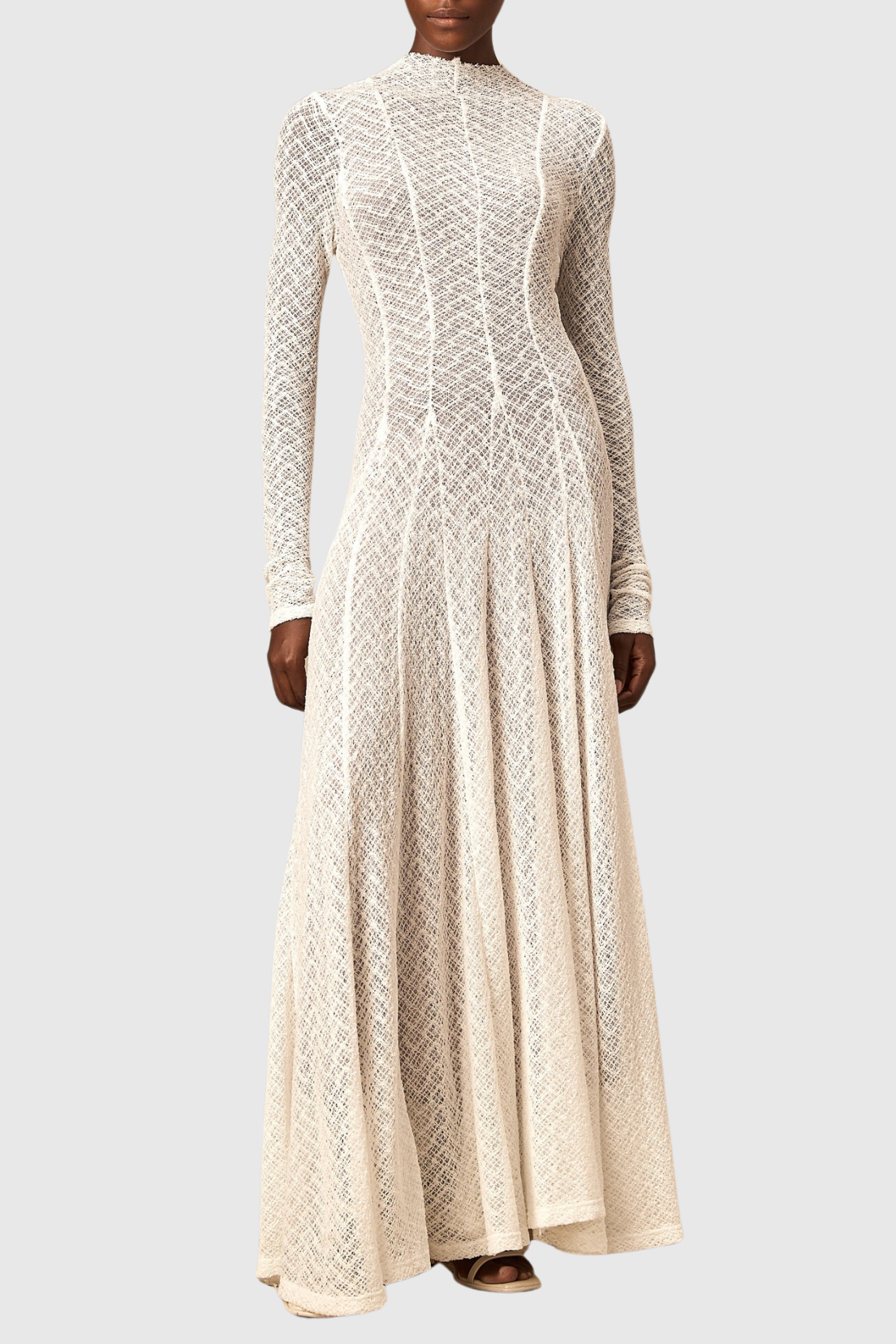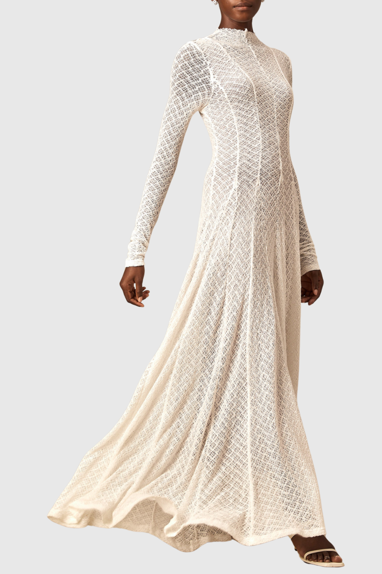 Dodiya Wavy-pattern Lace Maxi Dress - White