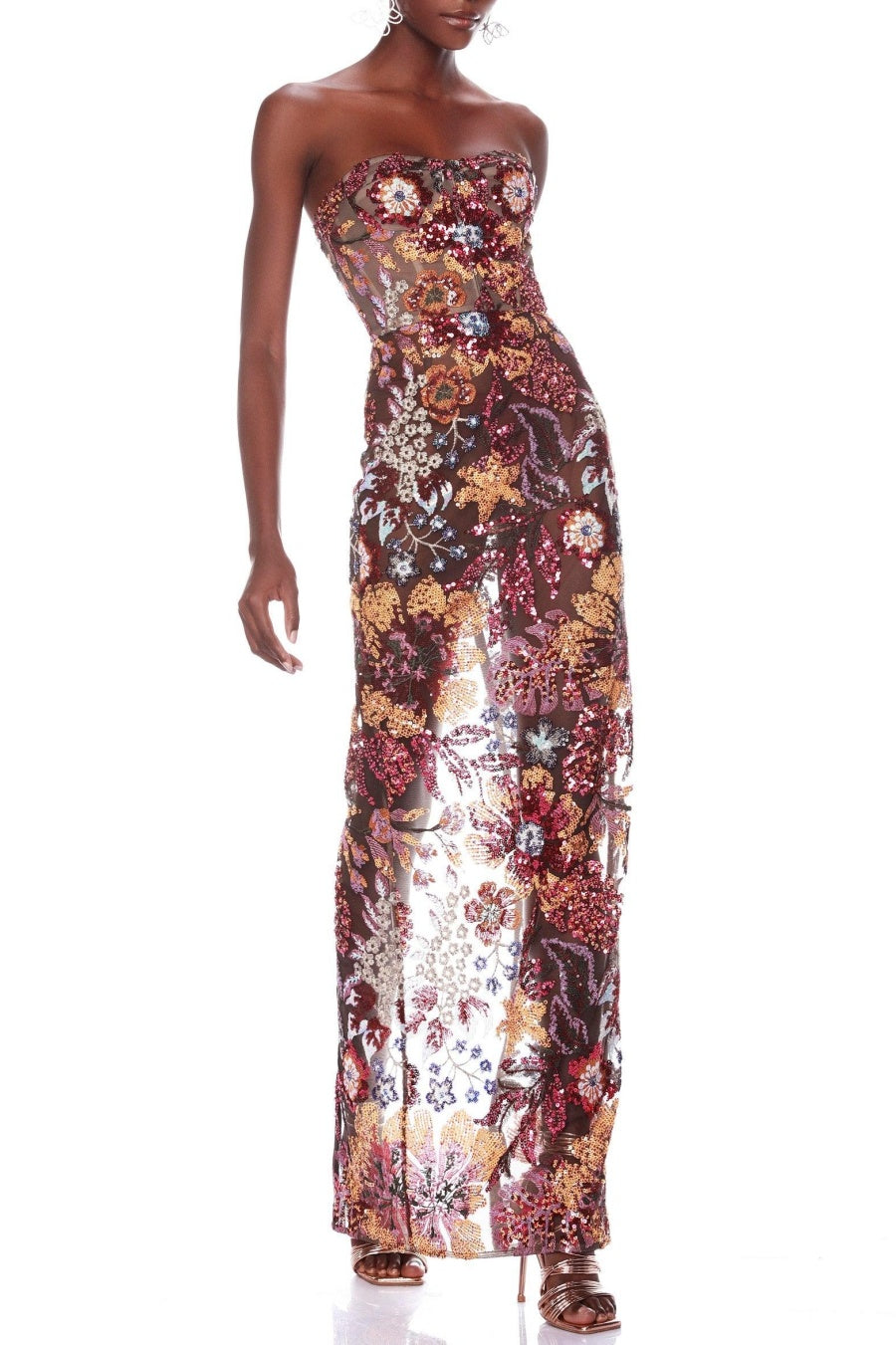 Elevate your summer wardrobe with the Elara Floral Sequin Embroidered Strapless Maxi Dress. This vibrant dress features delicate floral embroidery and sparkling sequin details, making it perfect for a special occasion. Its strapless design adds a touch of elegance, while its maxi length provides a luxurious flow. Make a statement and turn heads in this exclusive dress.