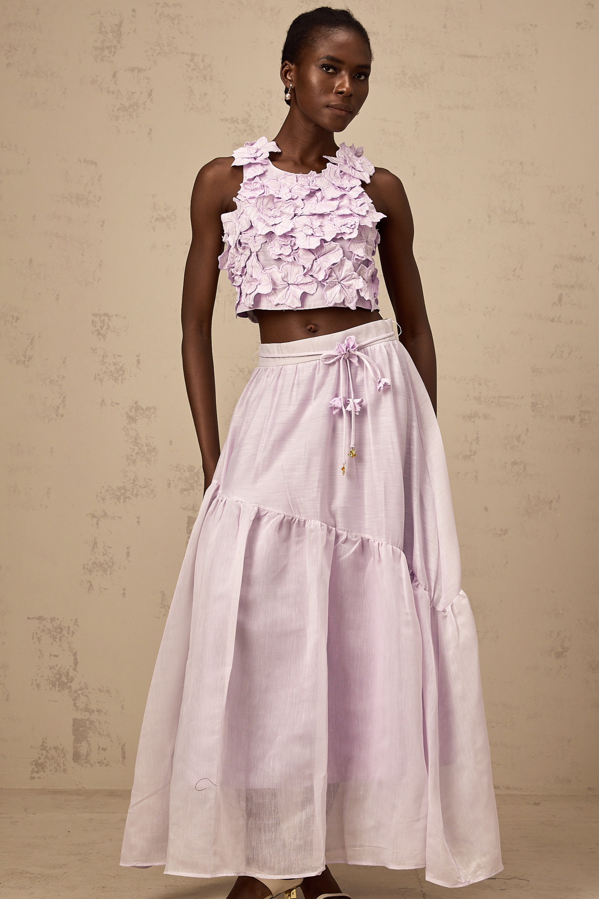 Eléa purple faux-flower top & skirt matching set