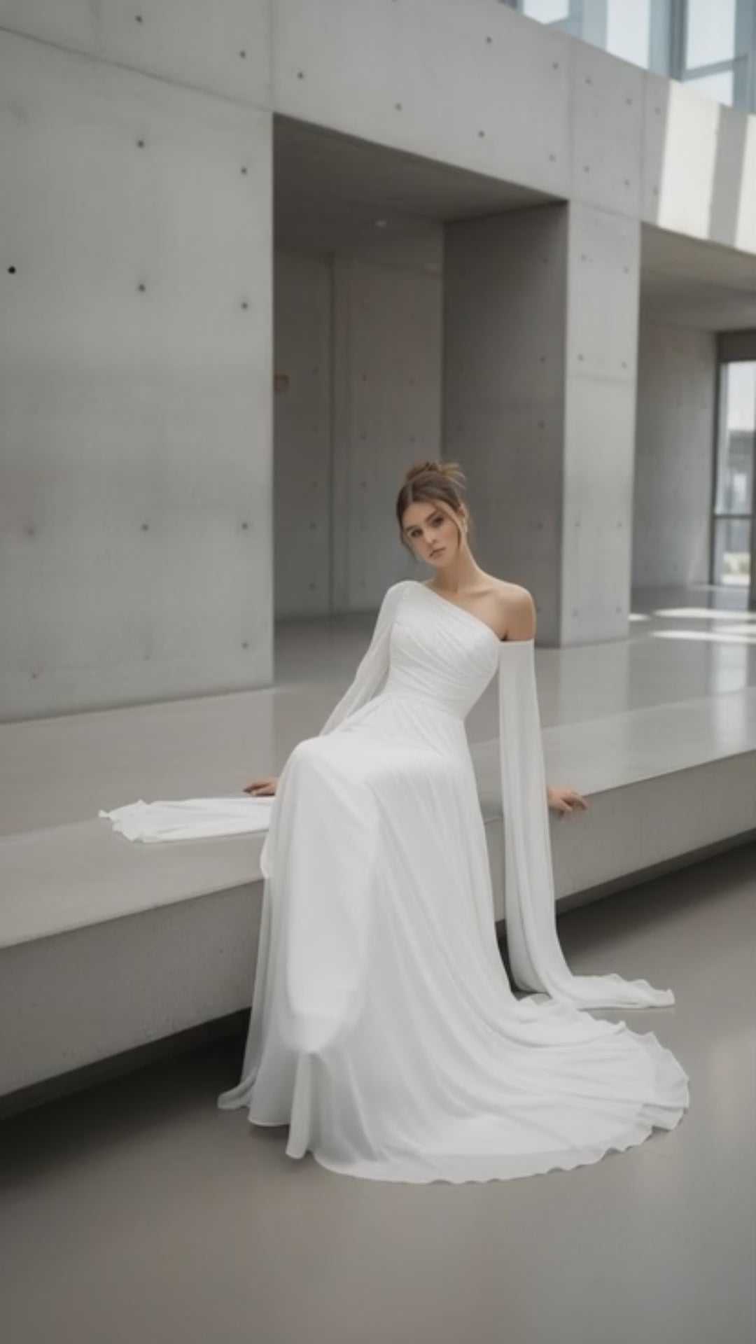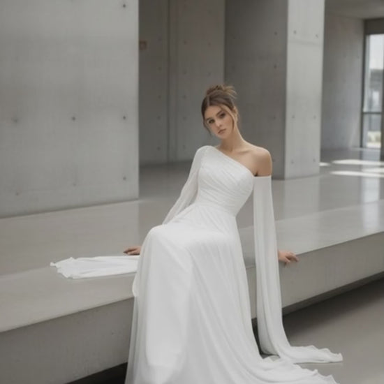 Maison Celie – Asymmetric White Chiffon Evening Gown