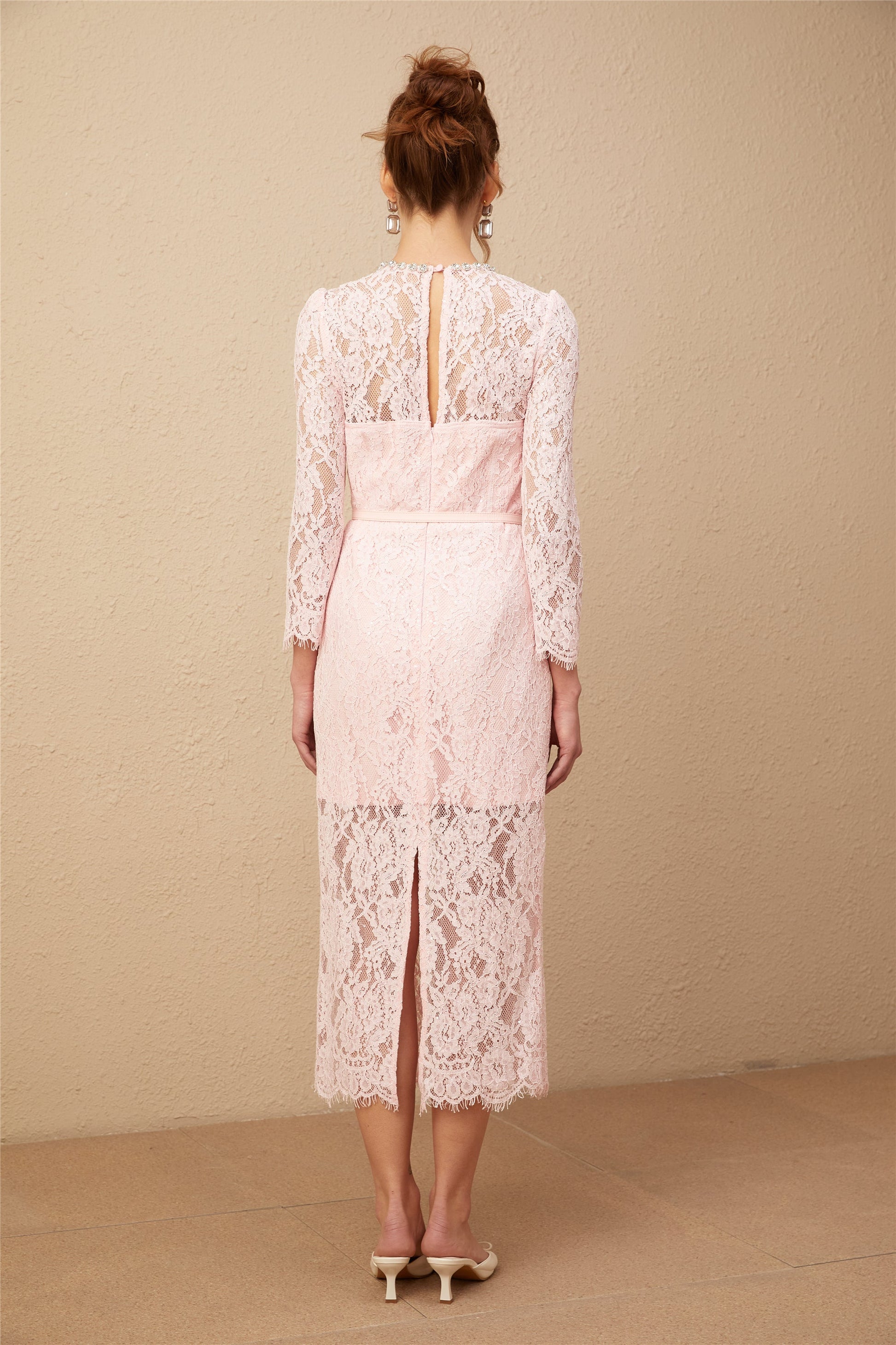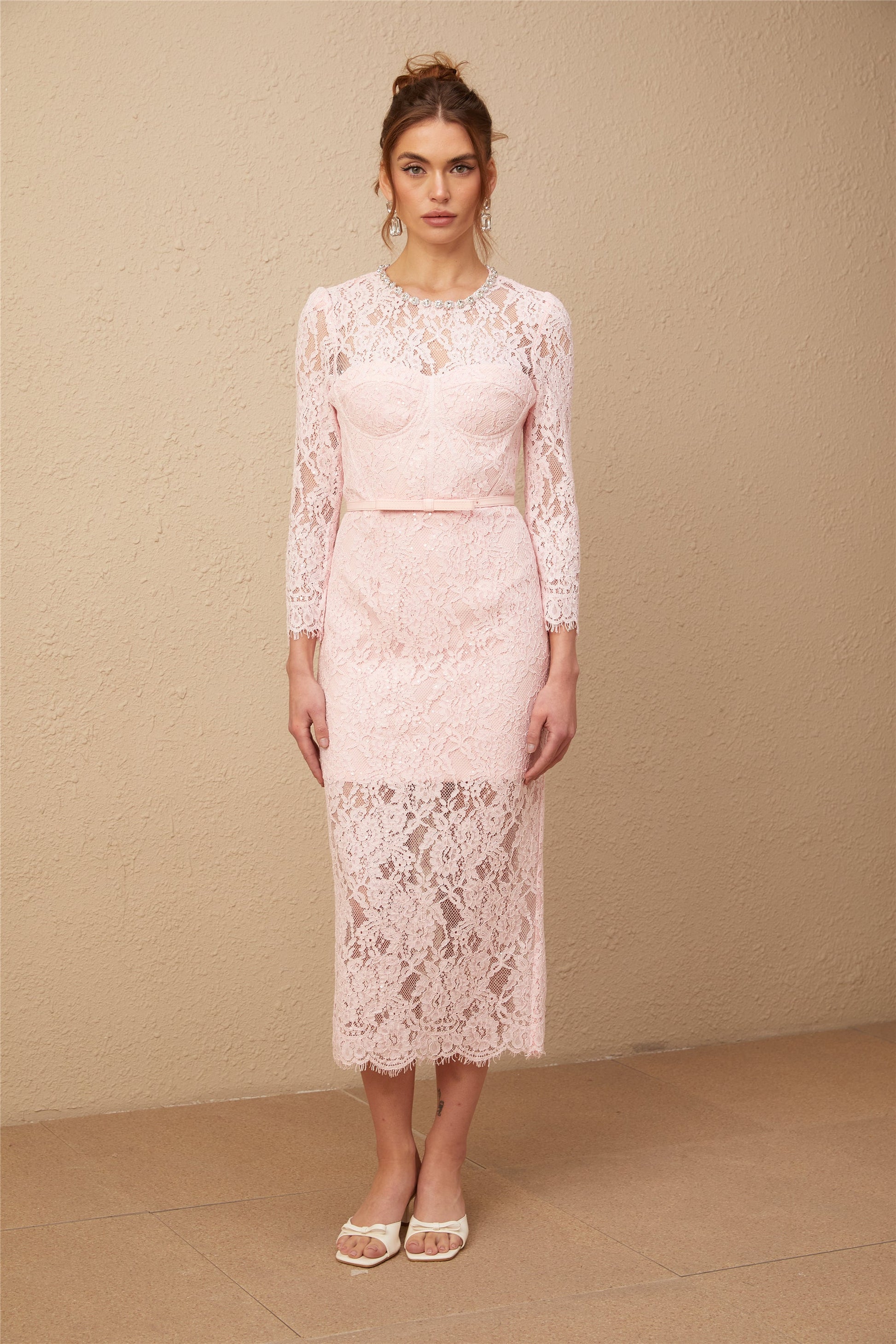 Elisabetta pink embellished floral-embroidered lace midi dress