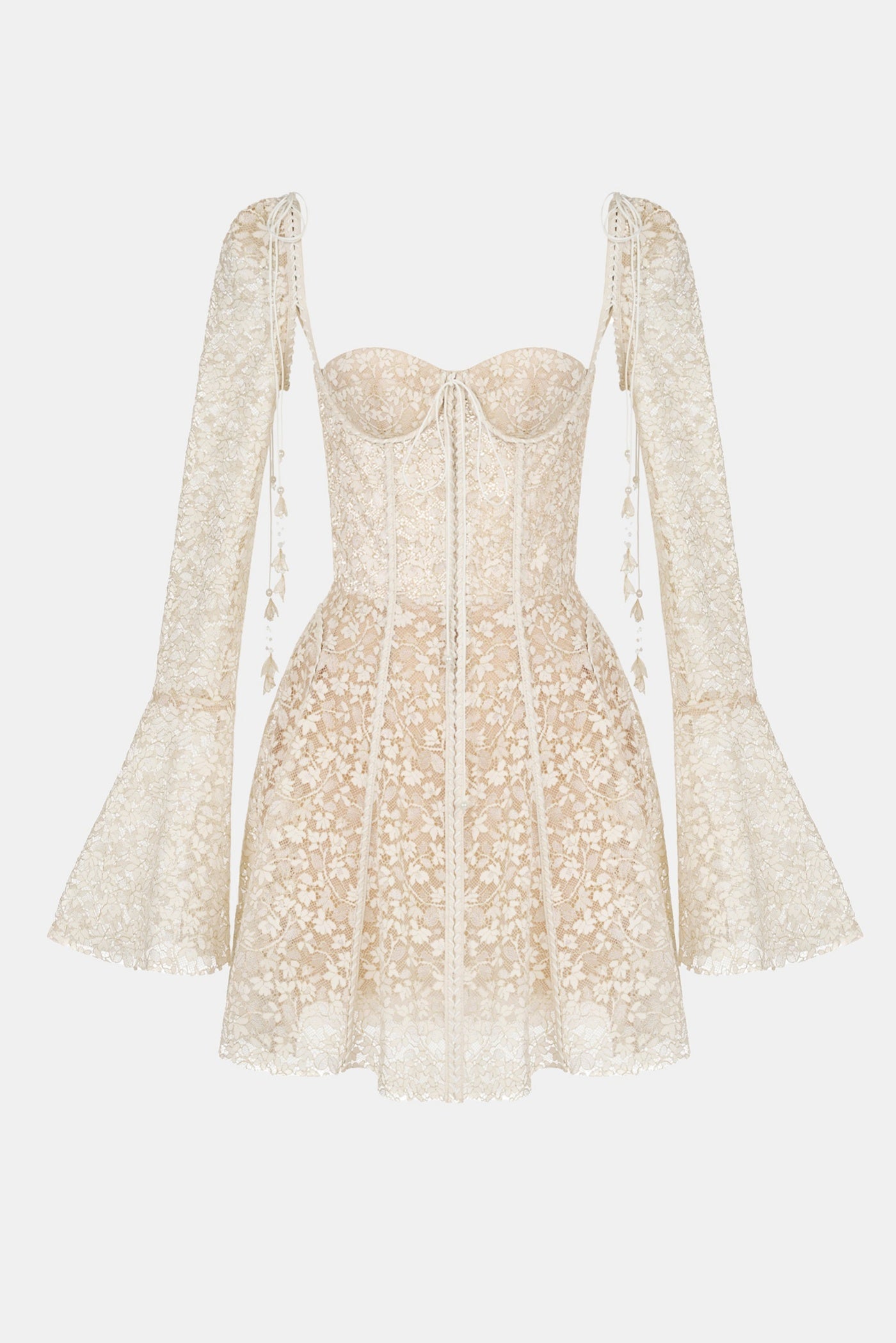 Emani Floral Lace Corset Mini Dress - Beige