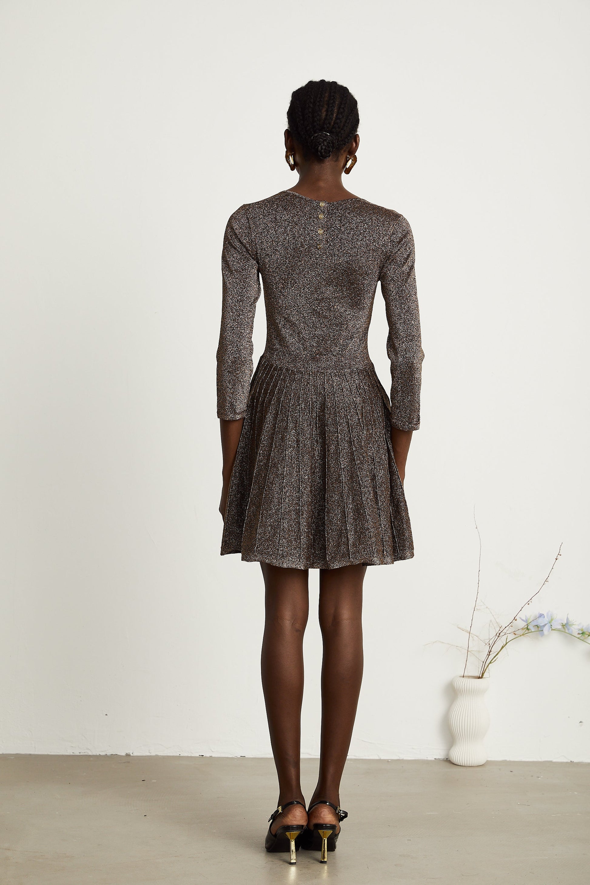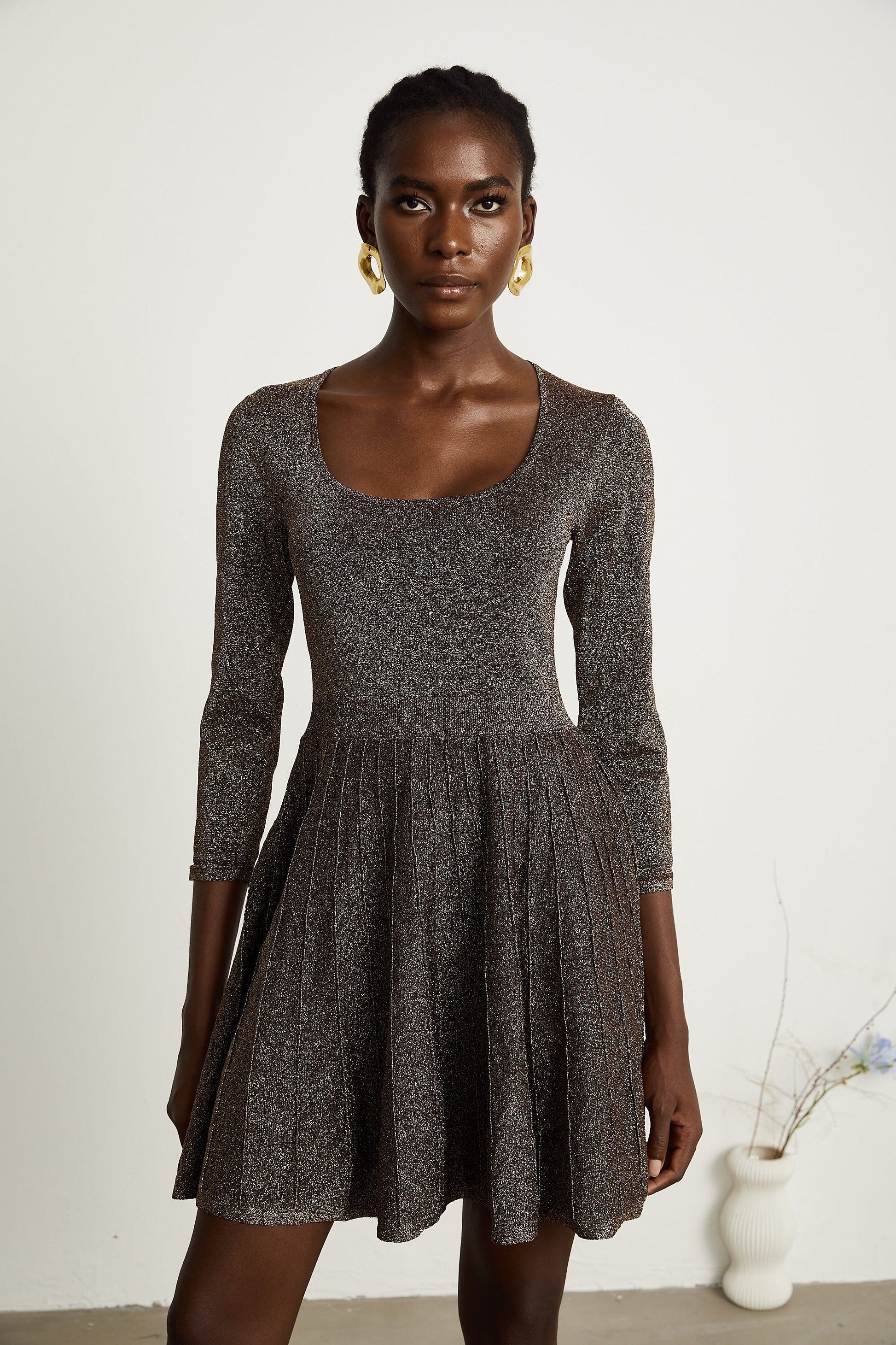 Émeline metallic-threading ribbed mini dress