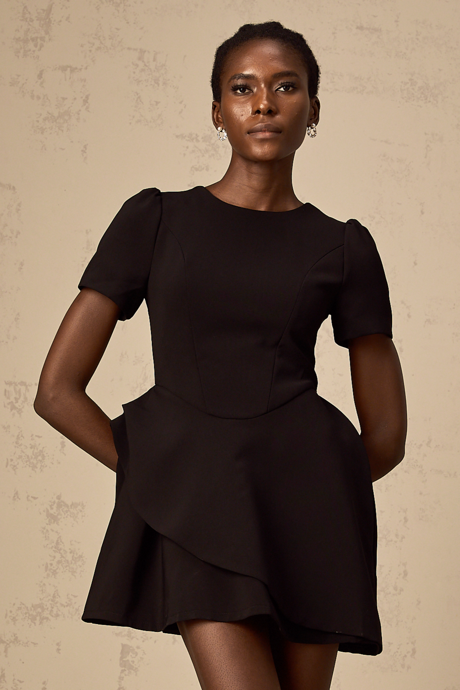 Emma black asymmetric ruffled mini dress
