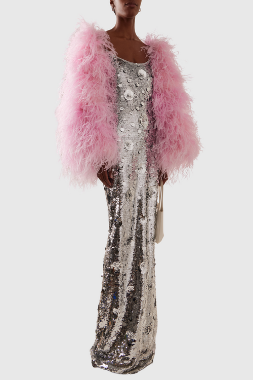 Elevate your evening with the Ericka Floral Sequin Maxi Dress, a stunning blend of elegance and sparkle. This floor-length gown features intricate floral sequin detailing that catches the light beautifully, creating a refined and graceful silhouette. Perfect for formal occasions, it offers a sophisticated look that effortlessly combines glamour with timeless style.