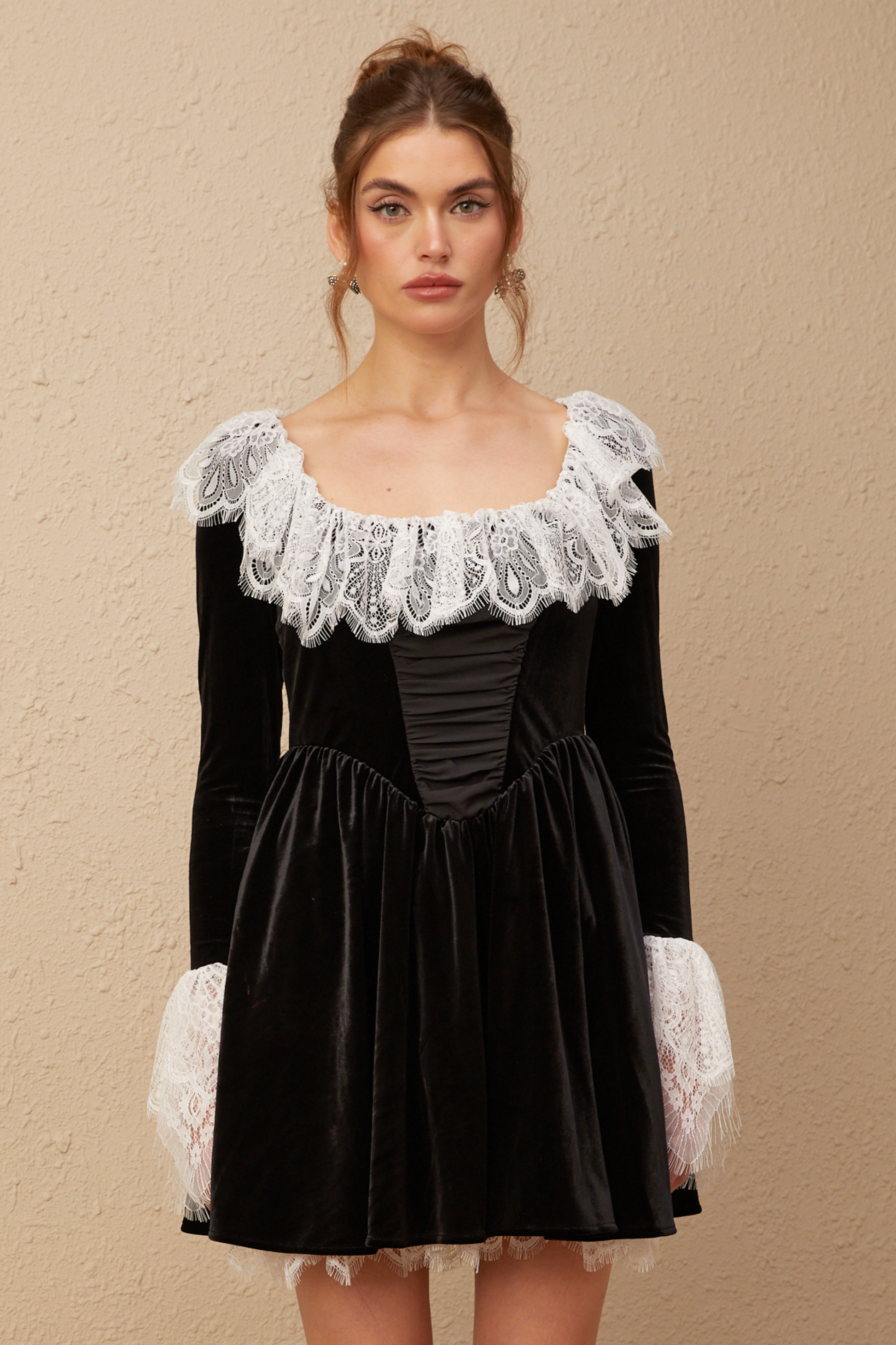 Fabiana black lace-trimmed velvet mini dress