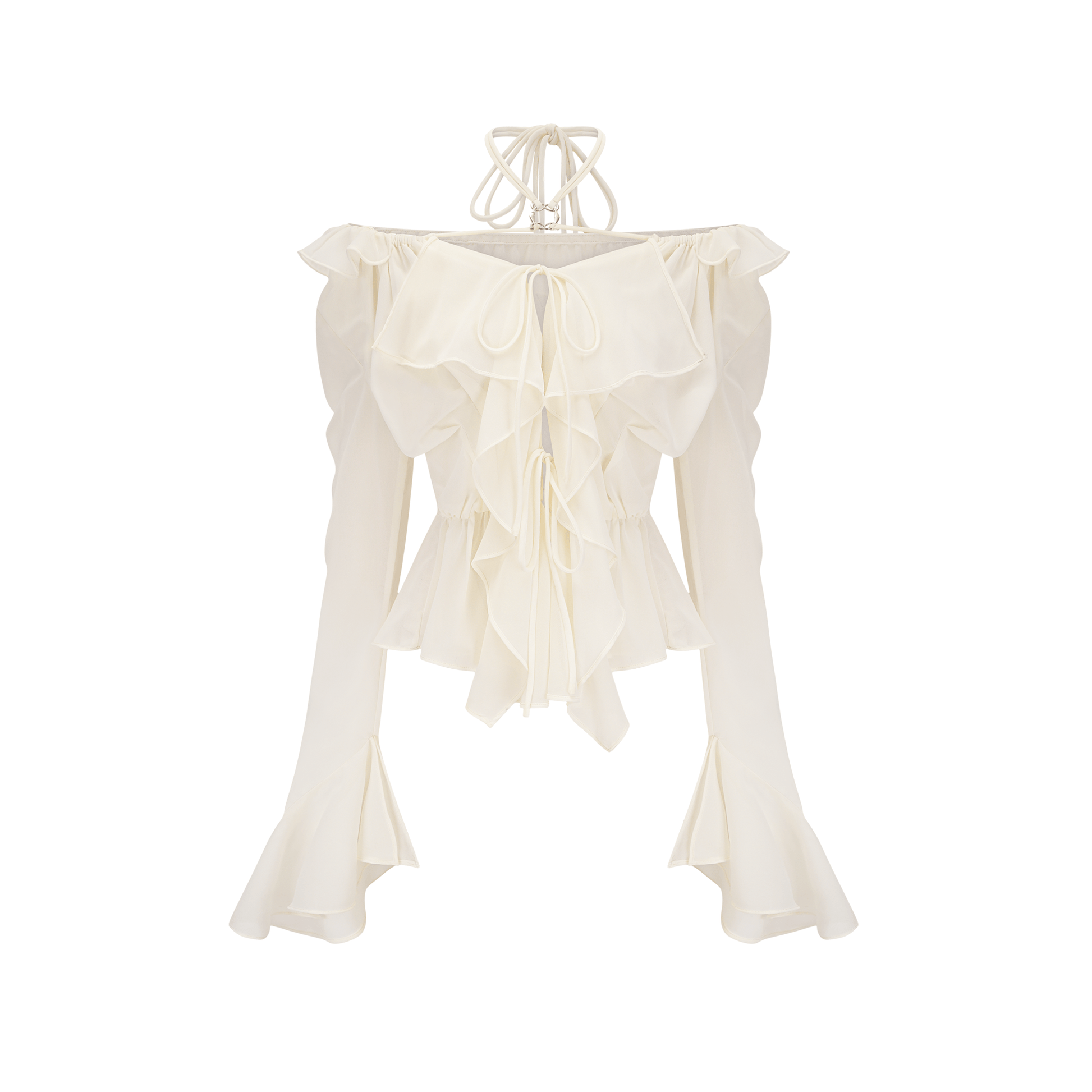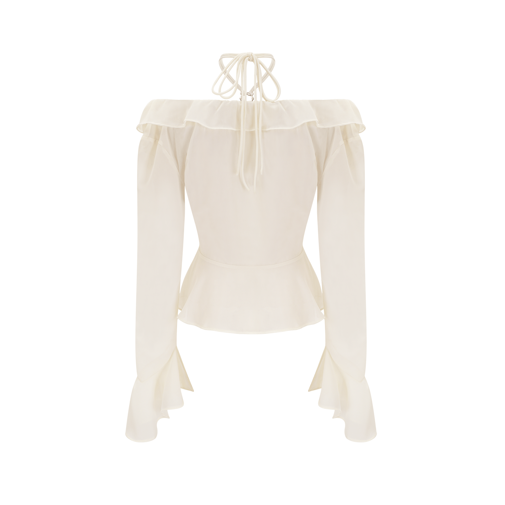 Fauve white ruffle strapless long-sleeve blouse