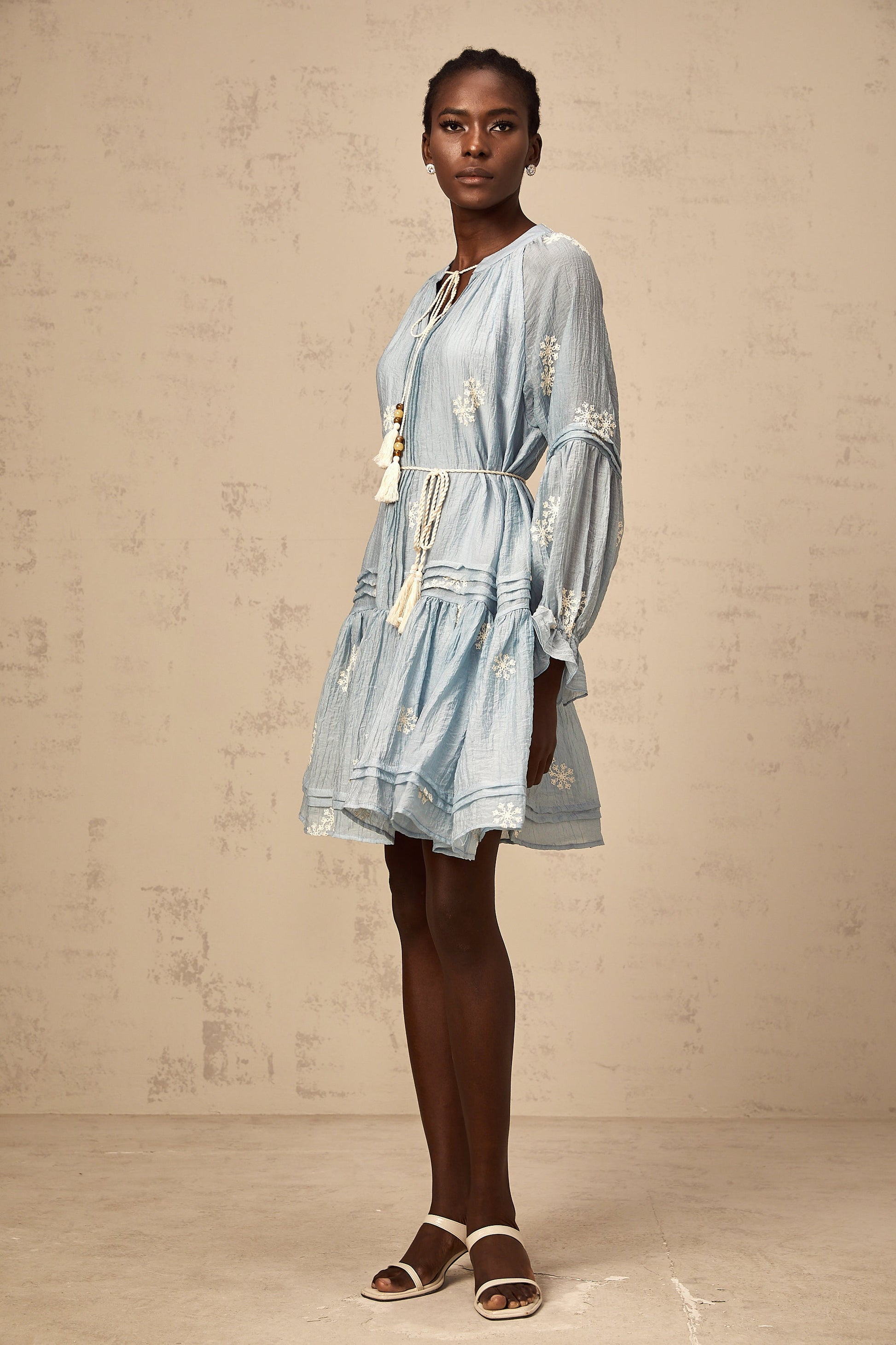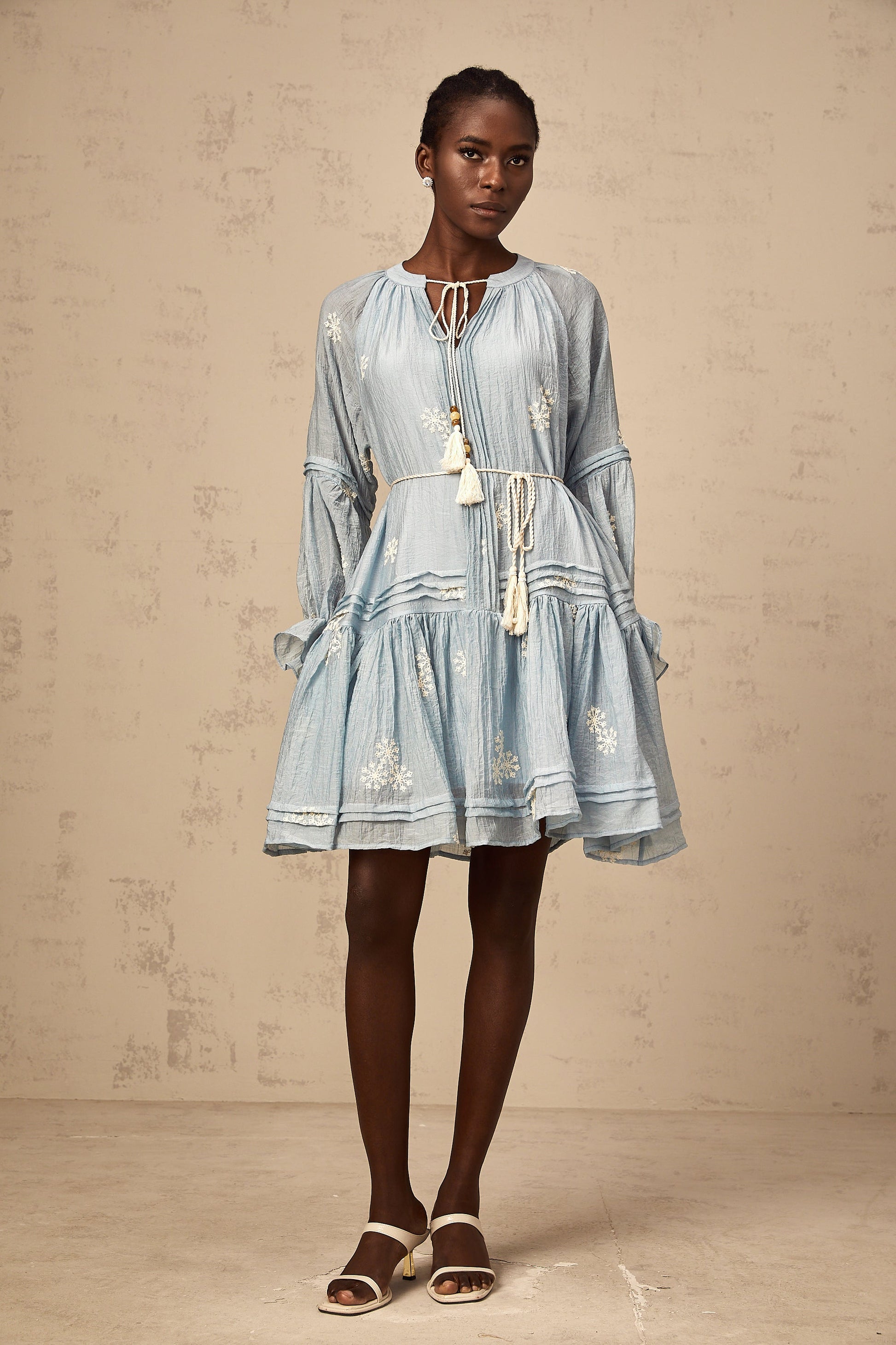 Félicie blue flower-embroidery mini dress