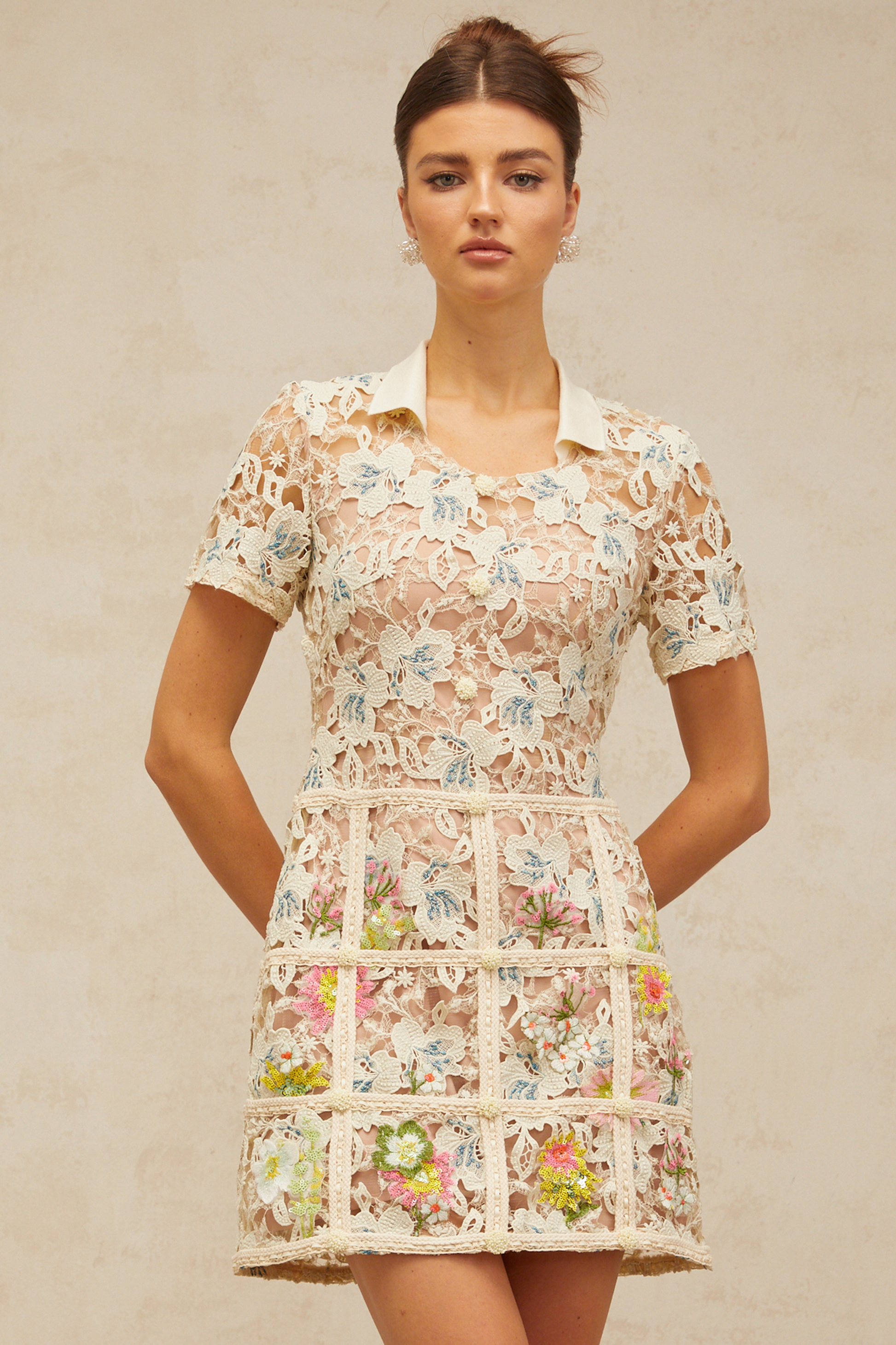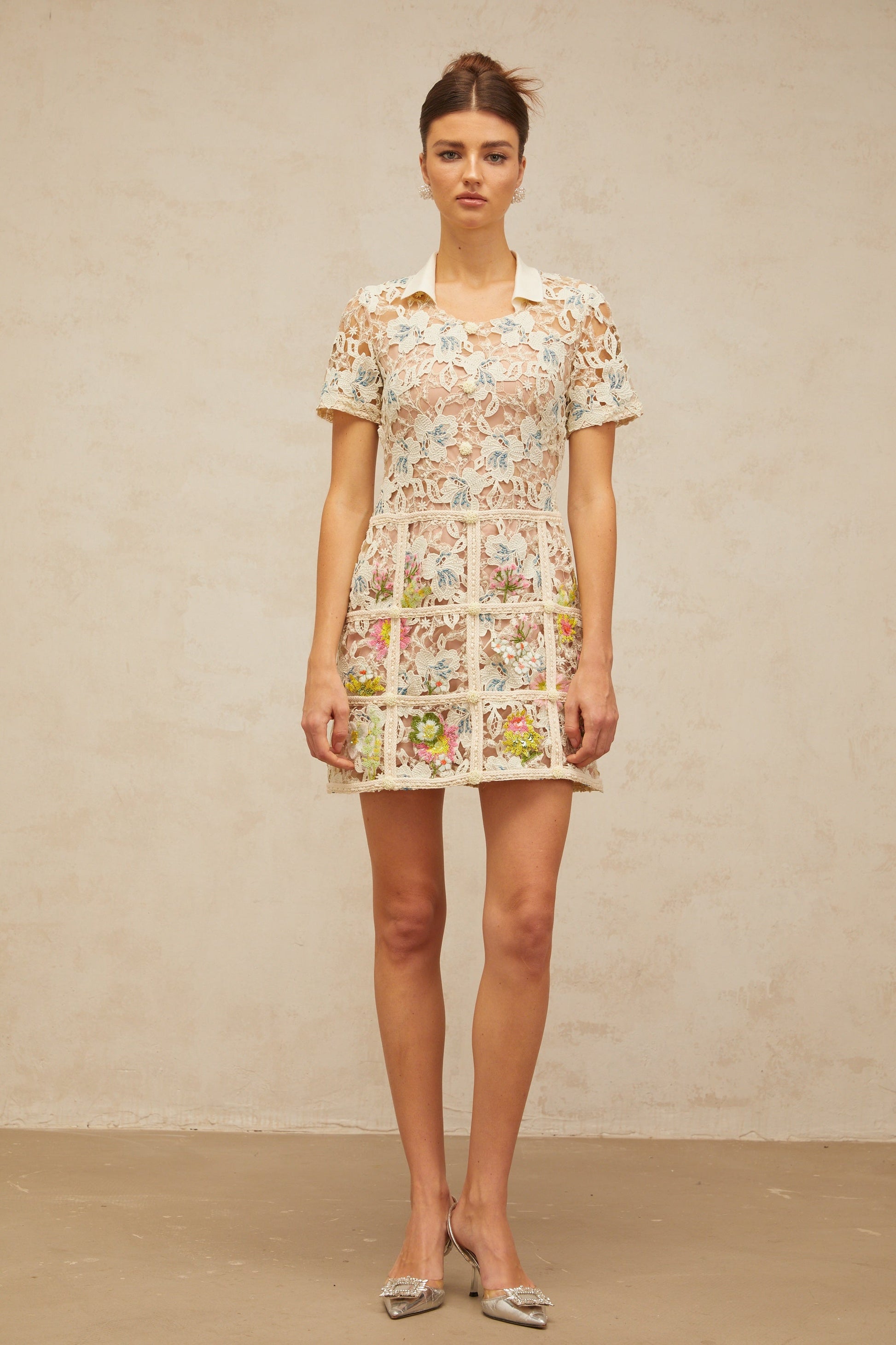 Françoise flower-embroidery mini dress