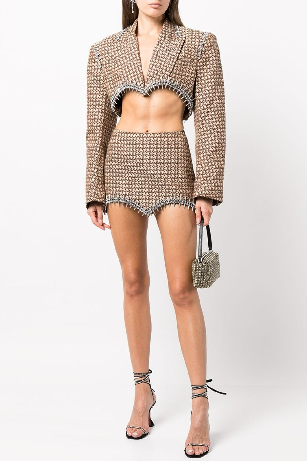 Elevate your wardrobe with our Frederica Crystal-embellished Blazer Set. Featuring a crystal-embellished blazer and two piece skirt, this set exudes sophistication and luxury. Perfect for formal events or a stylish workday, this set will elevate any look with its intricate detailing and sleek design.