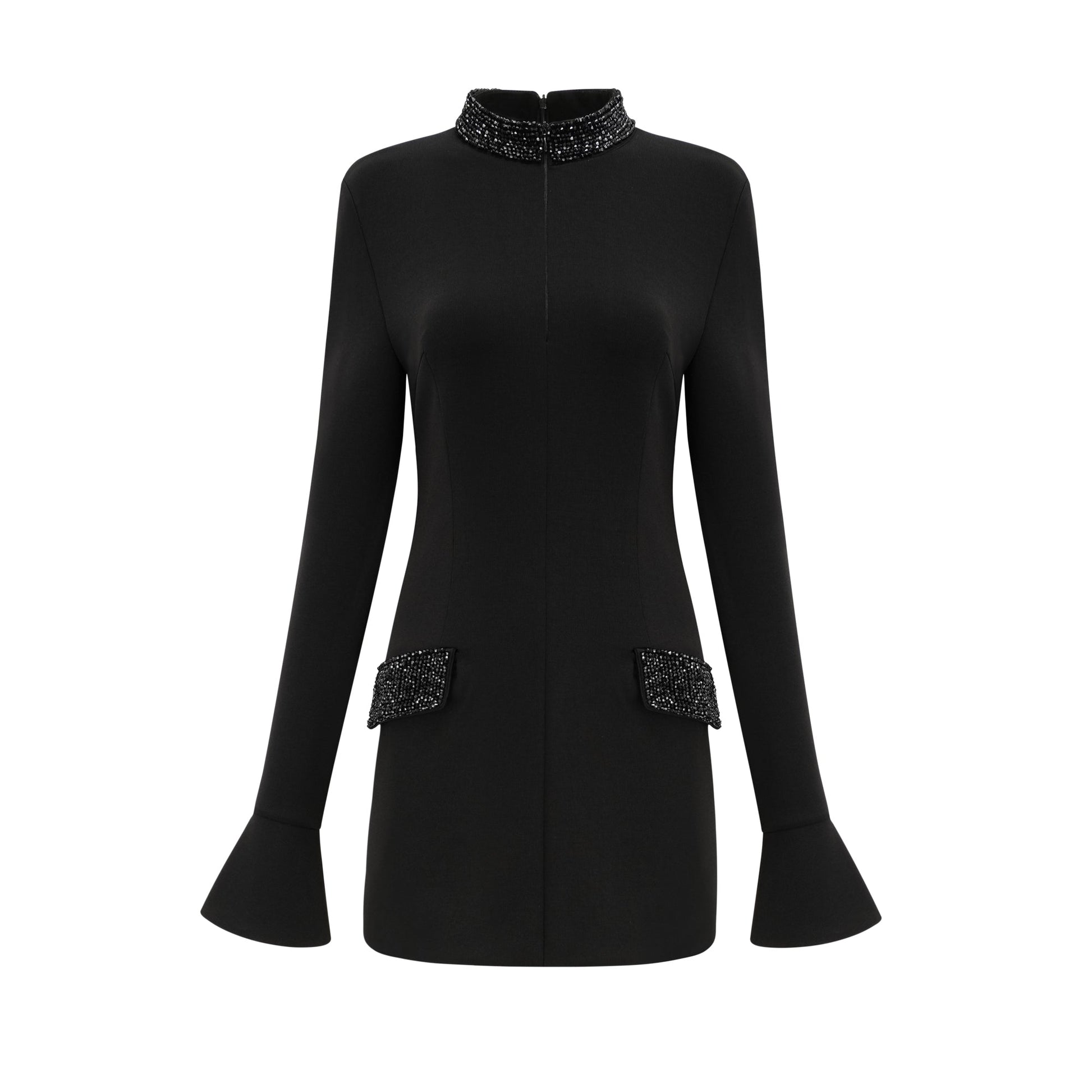 Gaëlle black embellished long-sleeved dress
