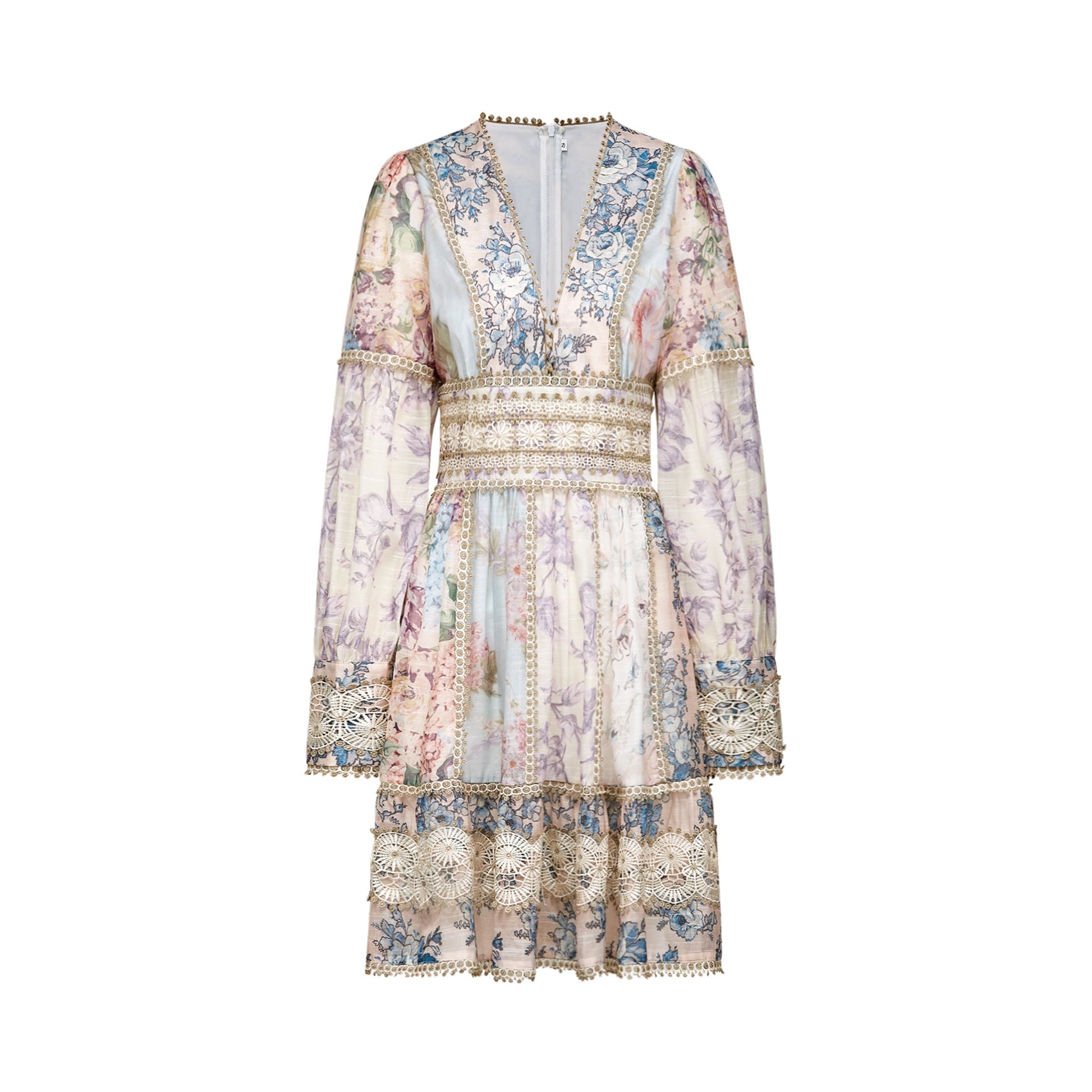 • Lace-embroidered trim