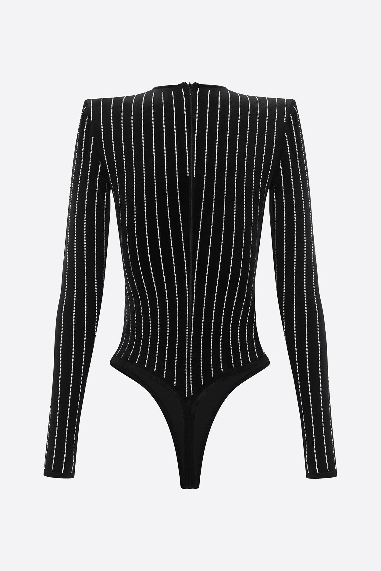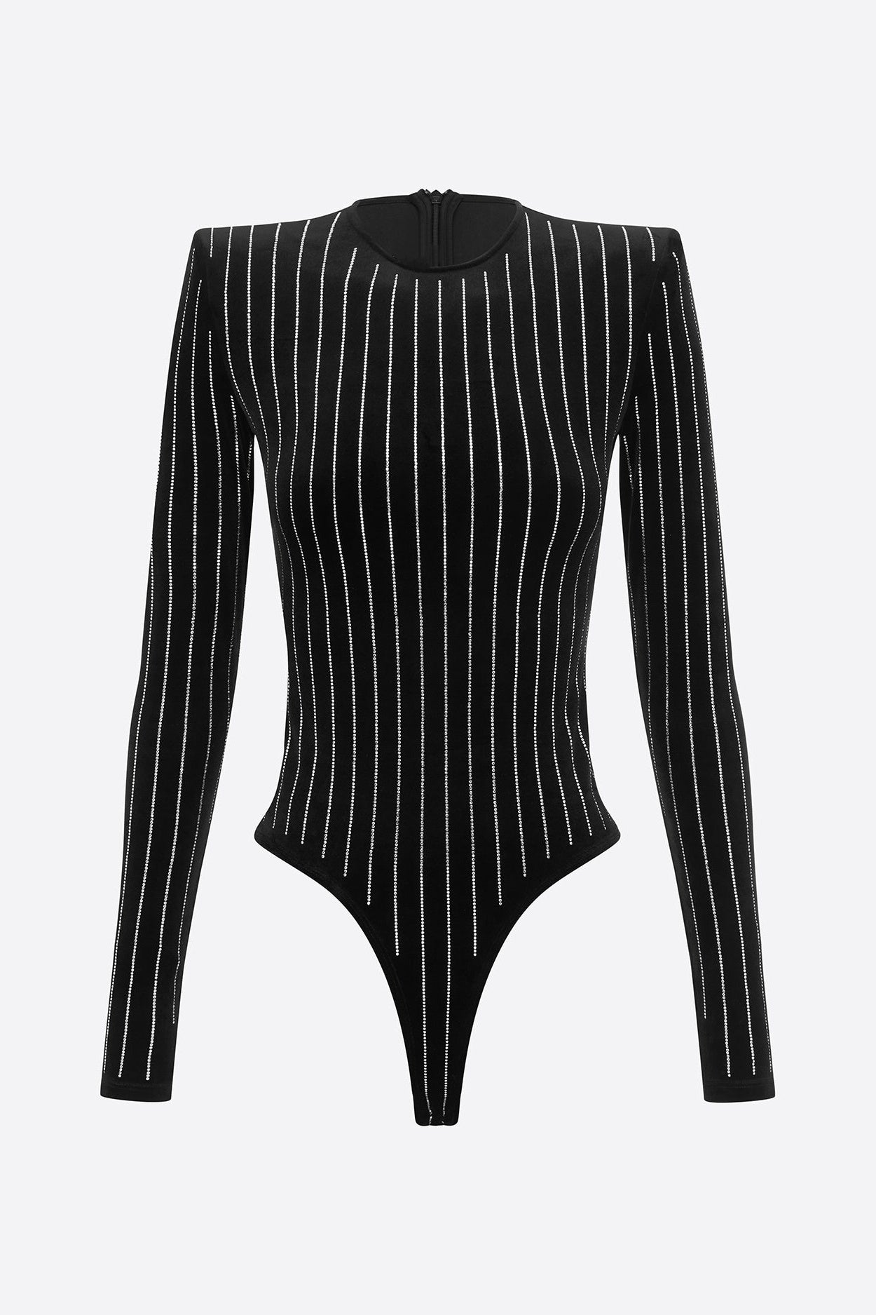 Indulge in pure luxury with our Gantha Crystal Embellished Bodysuit. Adorned with delicate crystal embellishments, this bodysuit is the epitome of elegance and sophistication. Perfect for special occasions or to add a touch of glamour to your everyday wardrobe. Feel like royalty in this exquisite piece.