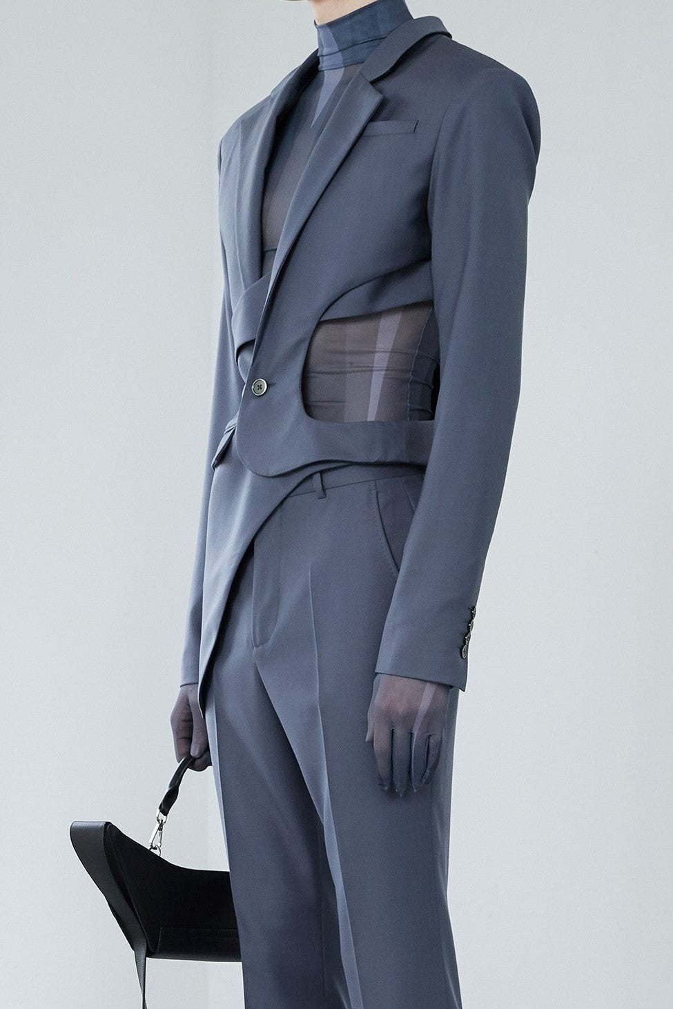 The Georgia Asymmetric Cutout Blazer offers a sophisticated and modern twist on the classic grey blazer. With its unique asymmetrical cutouts, this blazer adds a touch of edgy elegance to any outfit. Made from high-quality materials, it is comfortable, durable, and perfect for any professional or formal occasion. Elevate your wardrobe with this one-of-a-kind blazer.
