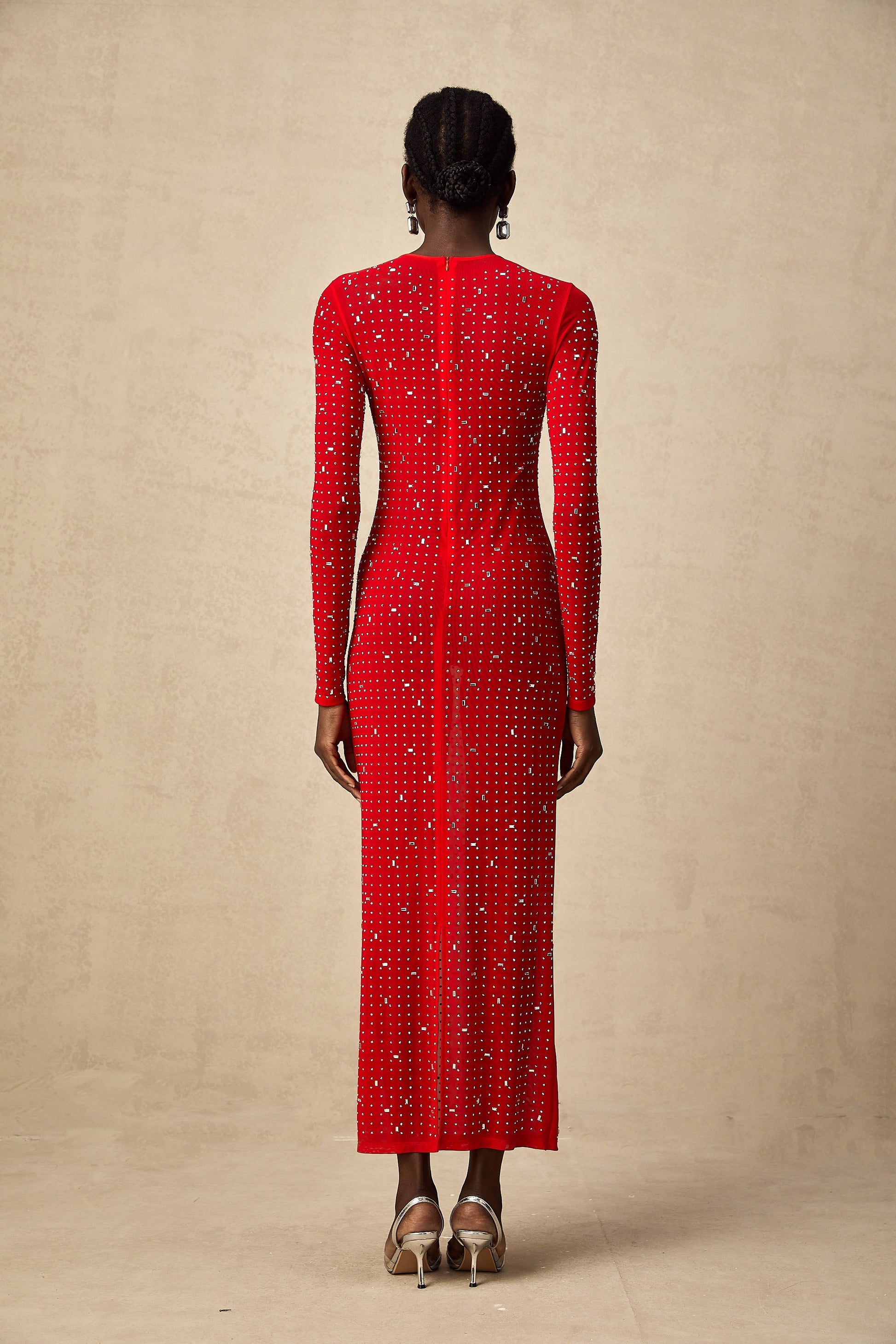 Ghislaine red rhinestone tulle maxi dress