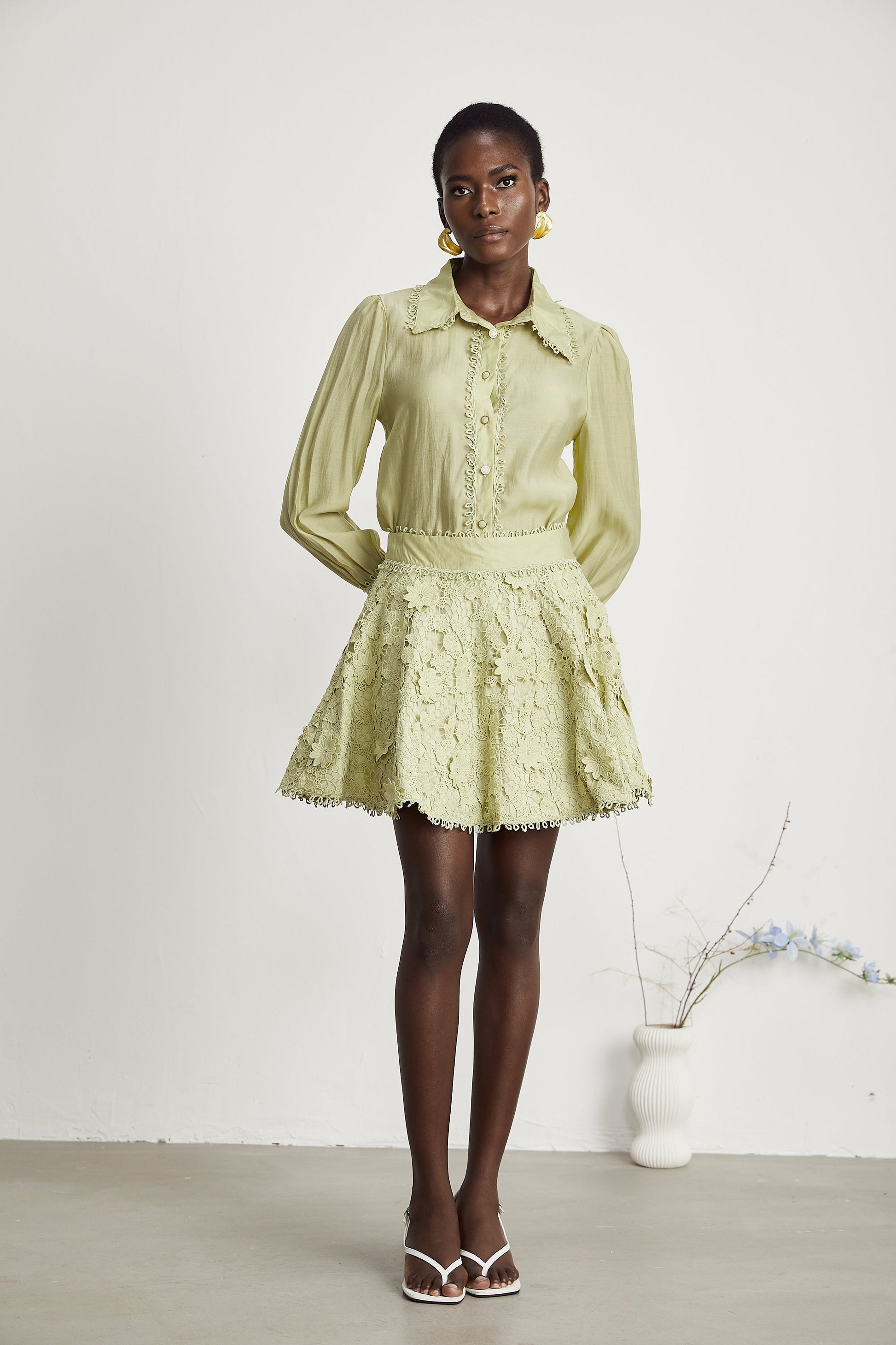 Hélène floral embroidered shirt & skirt matching set
