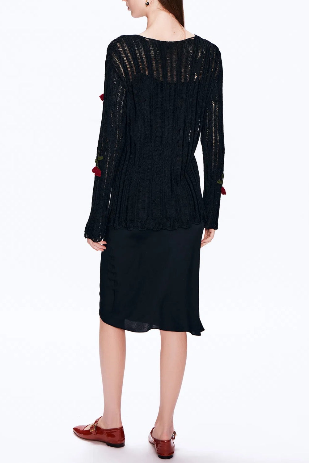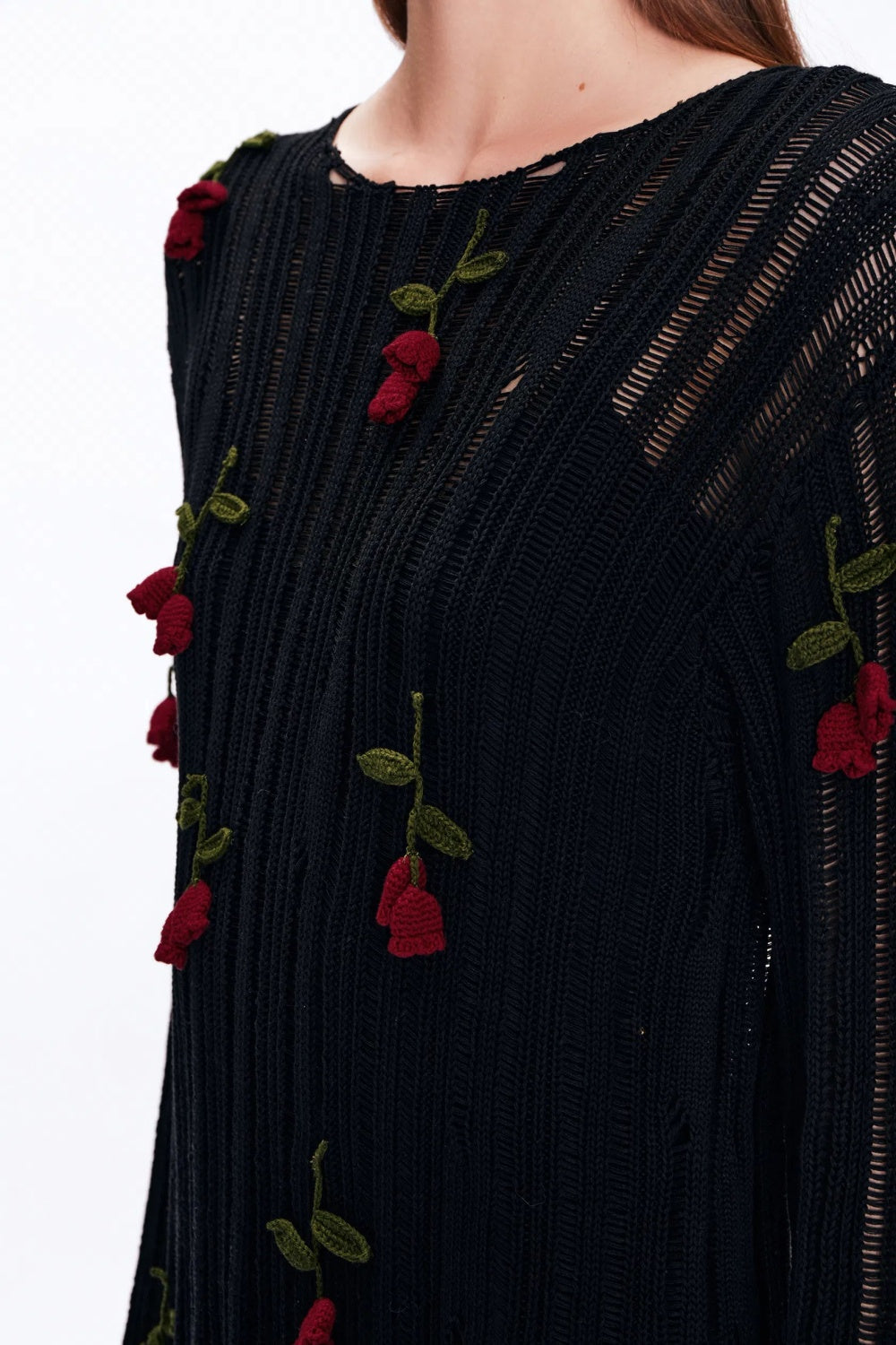 Elevate your wardrobe with our luxurious Hilaria Rose Handcrafted Knit Crochet Top. Handcrafted with intricate detail and expertly knit in a rose appliqué, this top exudes elegance and exclusivity. Experience the artistry and sophistication of this premium piece.