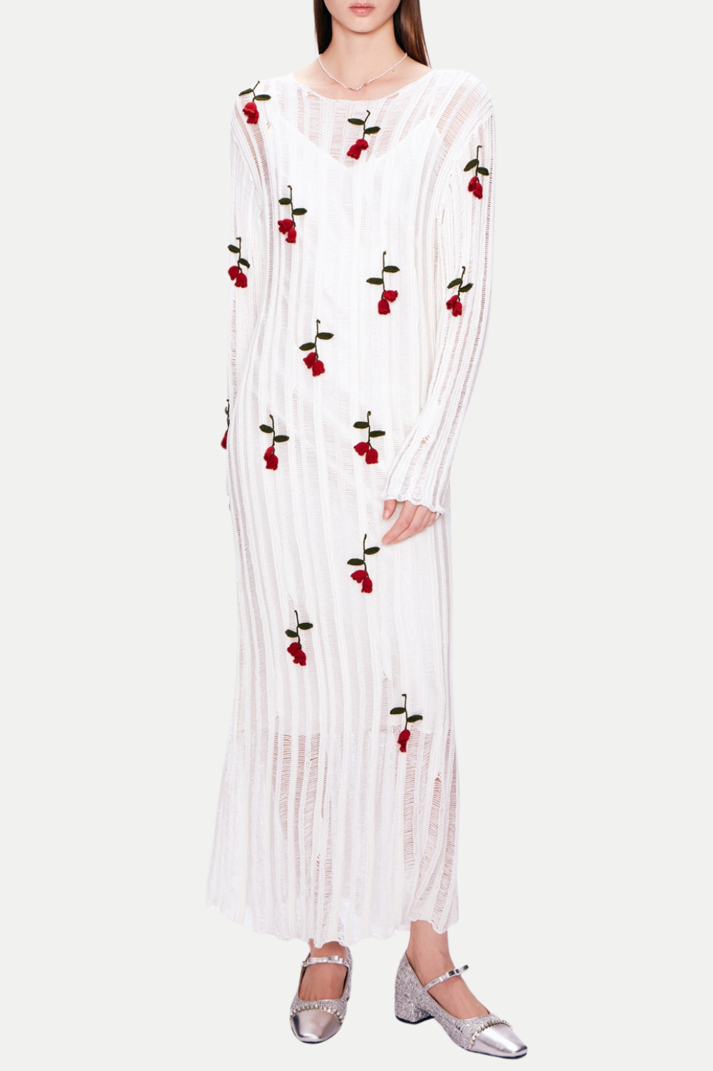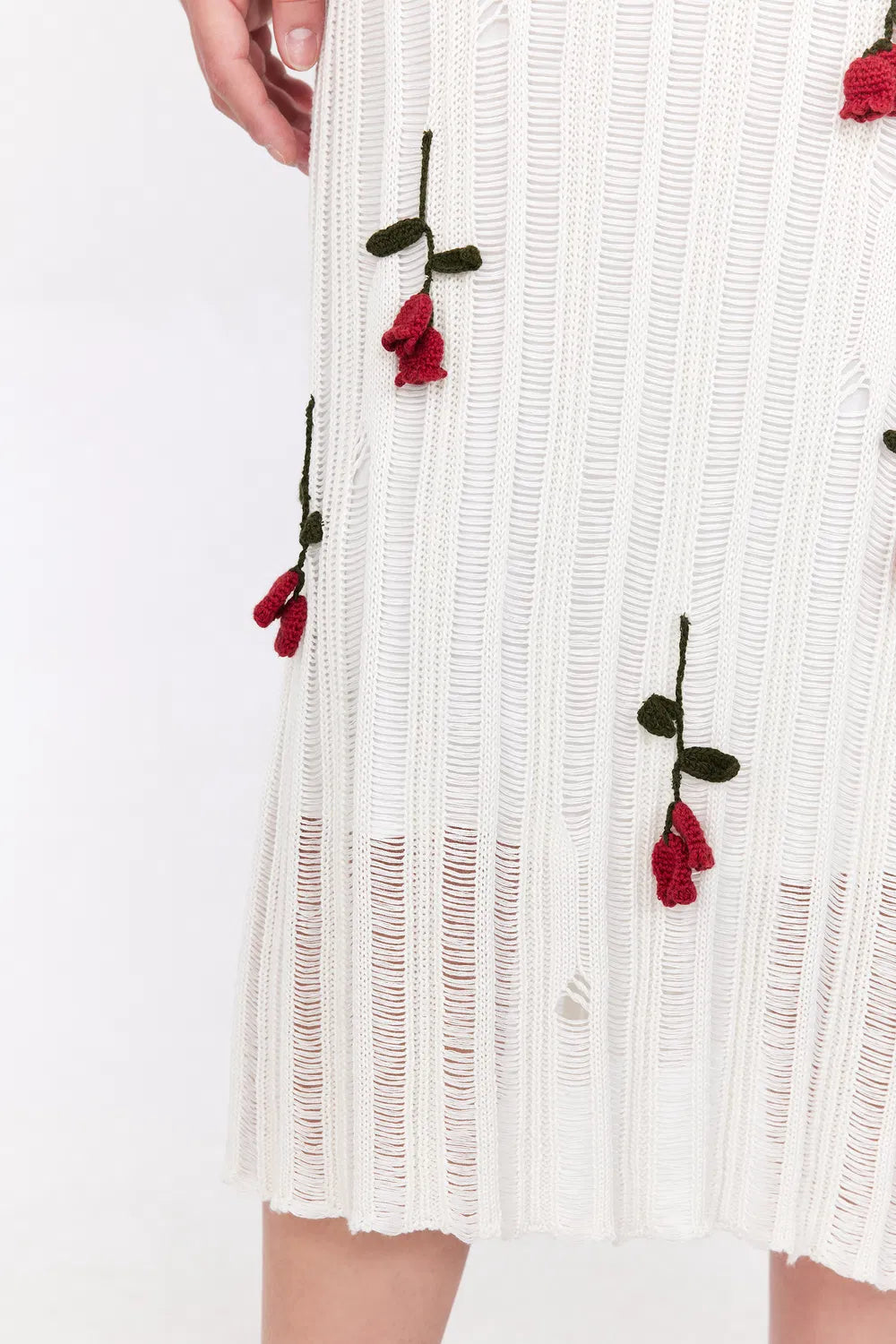 Hilaria Rose Handcrafted Knit Midi Dress - White