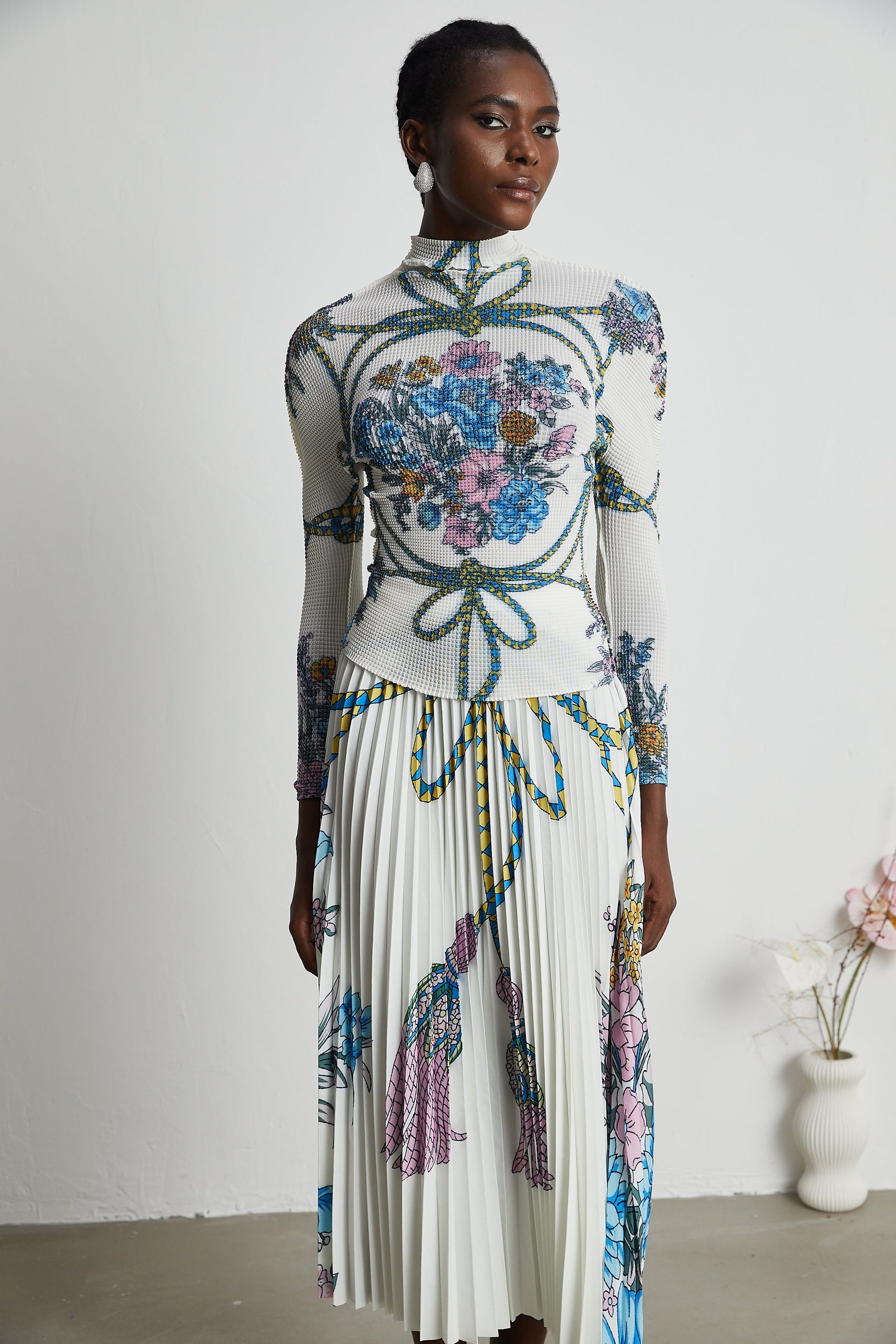 Huguette pattern-print top & skirt matching set
