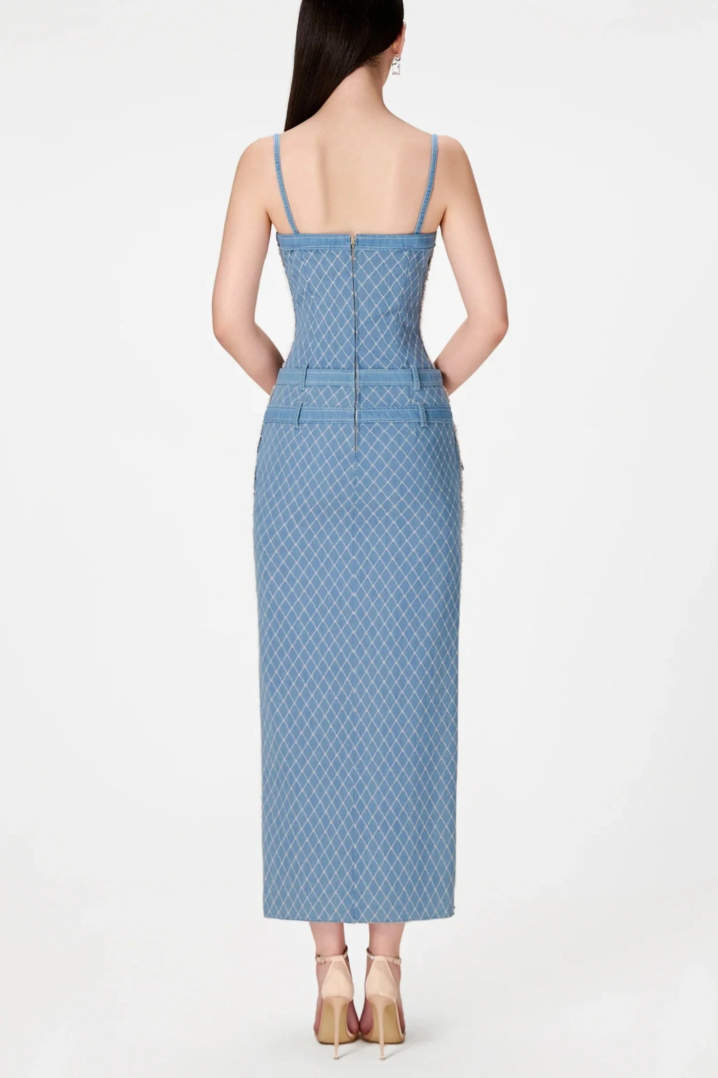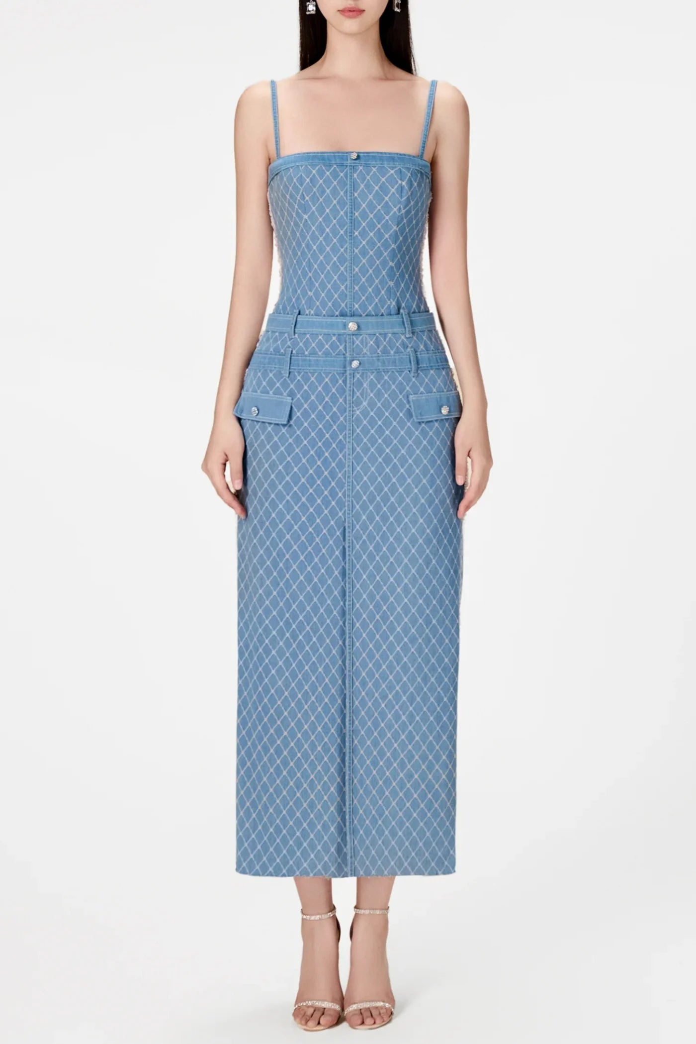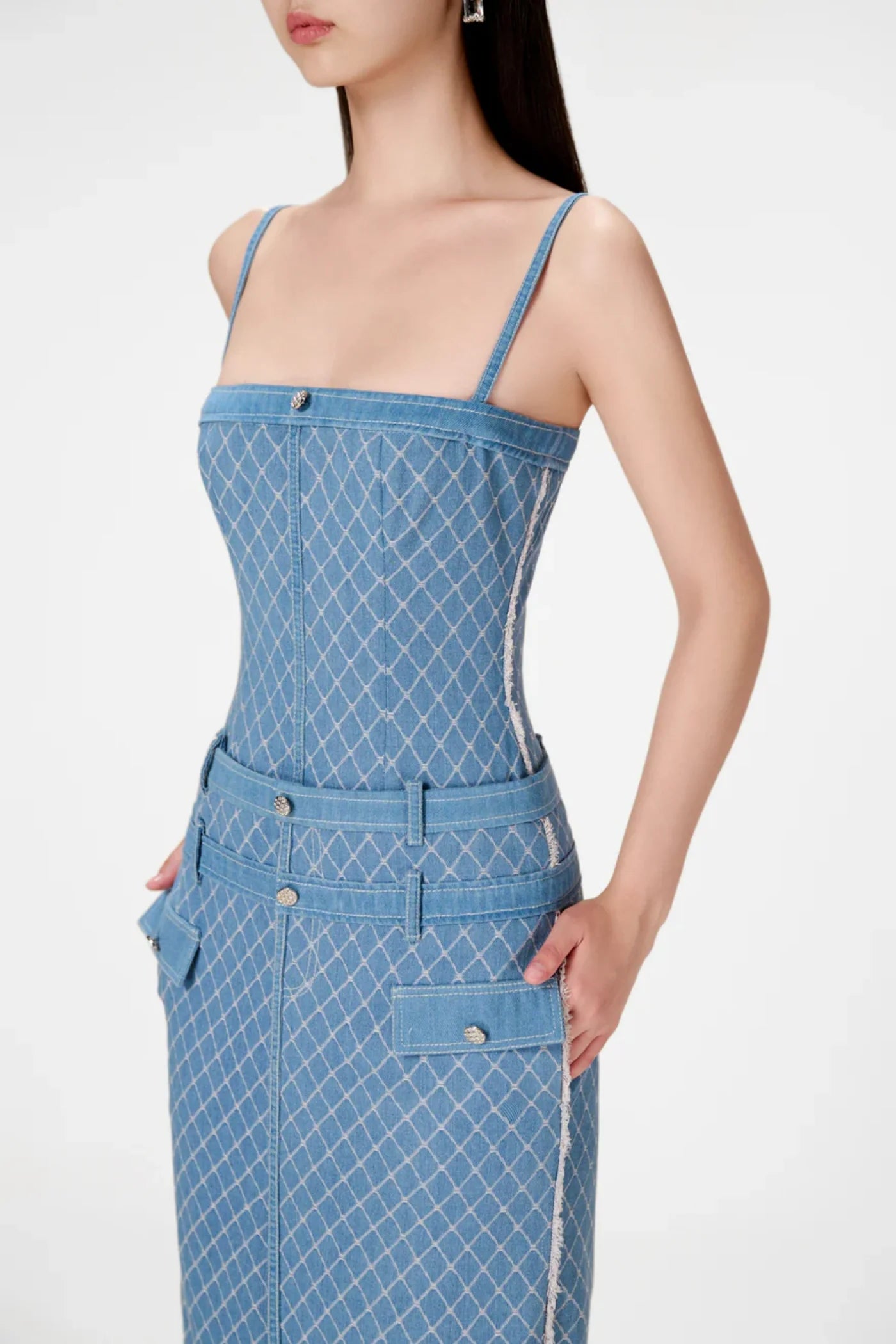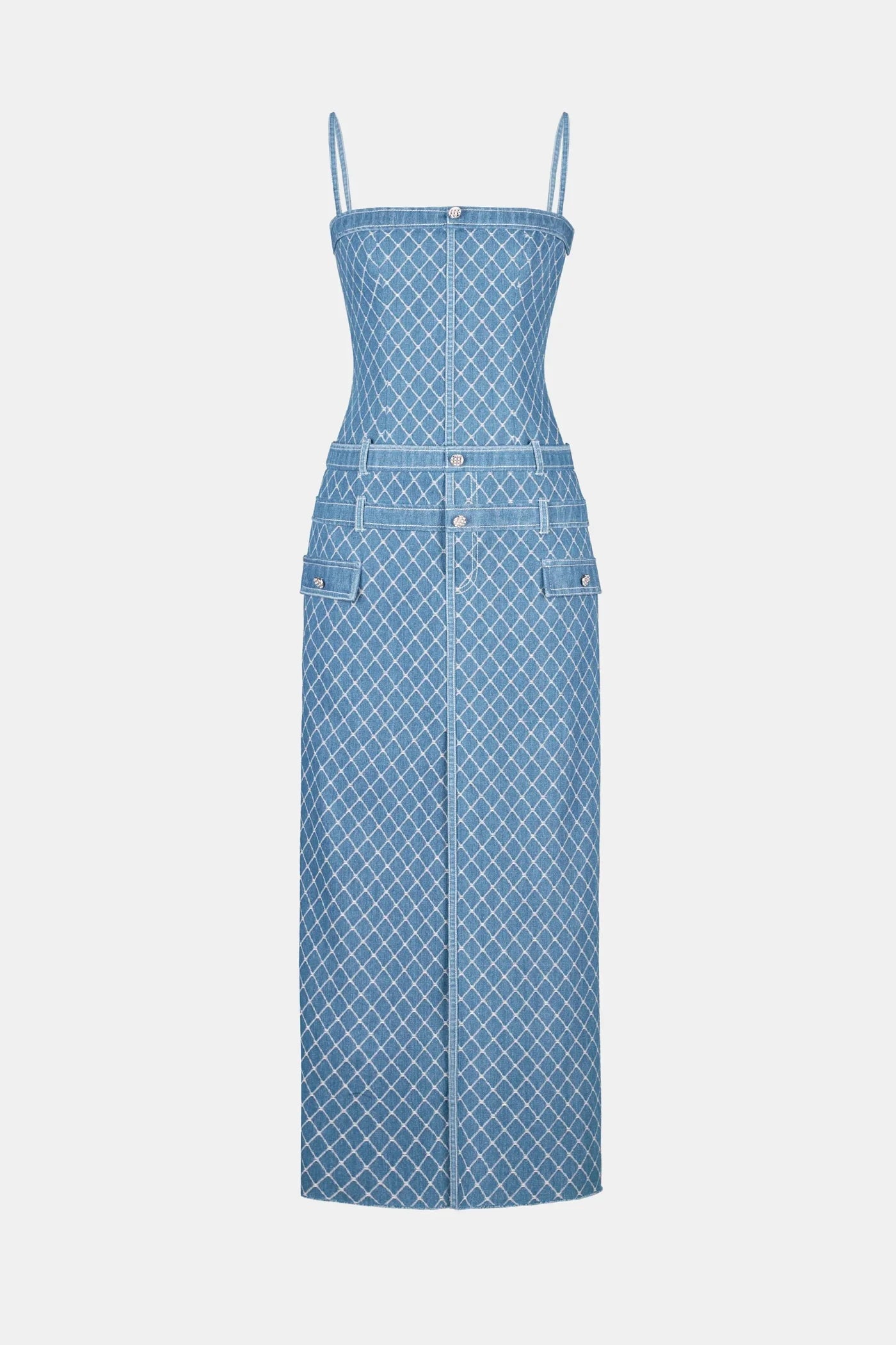 Indulge in the effortless sophistication of the Hullar Denim String Midi Dress. Crafted from premium denim, this dress features a unique string design that adds a touch of luxury. Perfect for day or evening wear, it's a must-have for any fashion-forward wardrobe. Elevate your style with this exclusive piece.