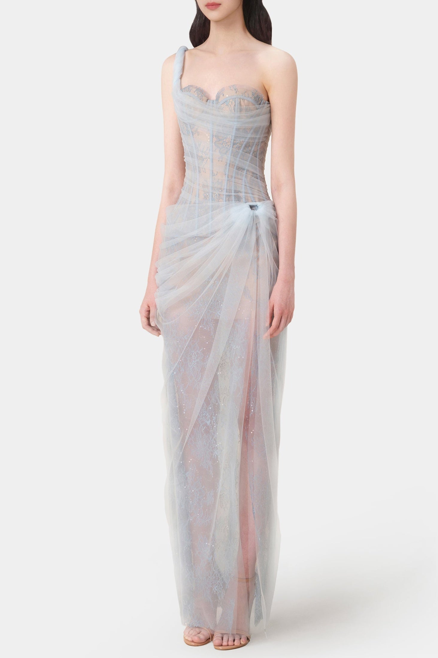 Inina Lace Corset One Shoulder Midi Dress - Blue