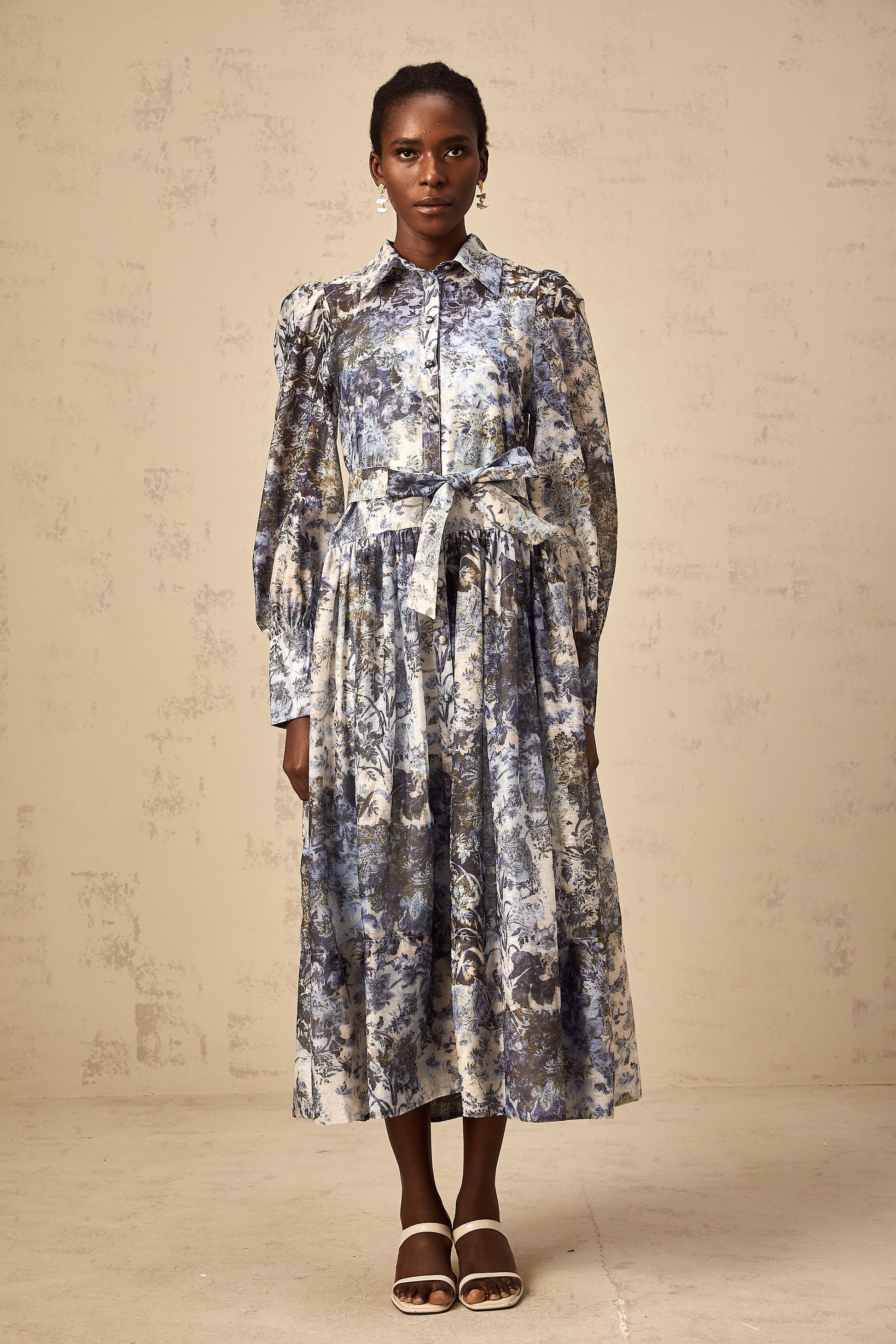 Irina blue floral-print midi dress