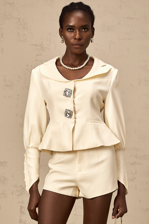 Iselin crystal-embellished jacket & shorts matching set