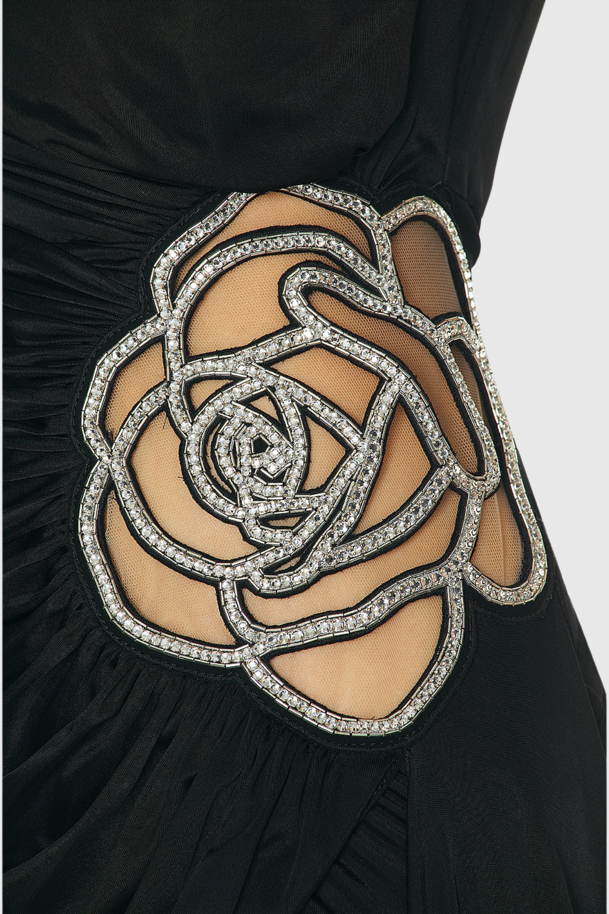 Indulge in luxury with our Janett One Shoulder Floral Embellished Mini Dress. The graceful draping and delicate rose crystal embellishments will elevate your style to sophisticated heights. Perfect for any occasion, this dress exudes elegance and exclusivity.