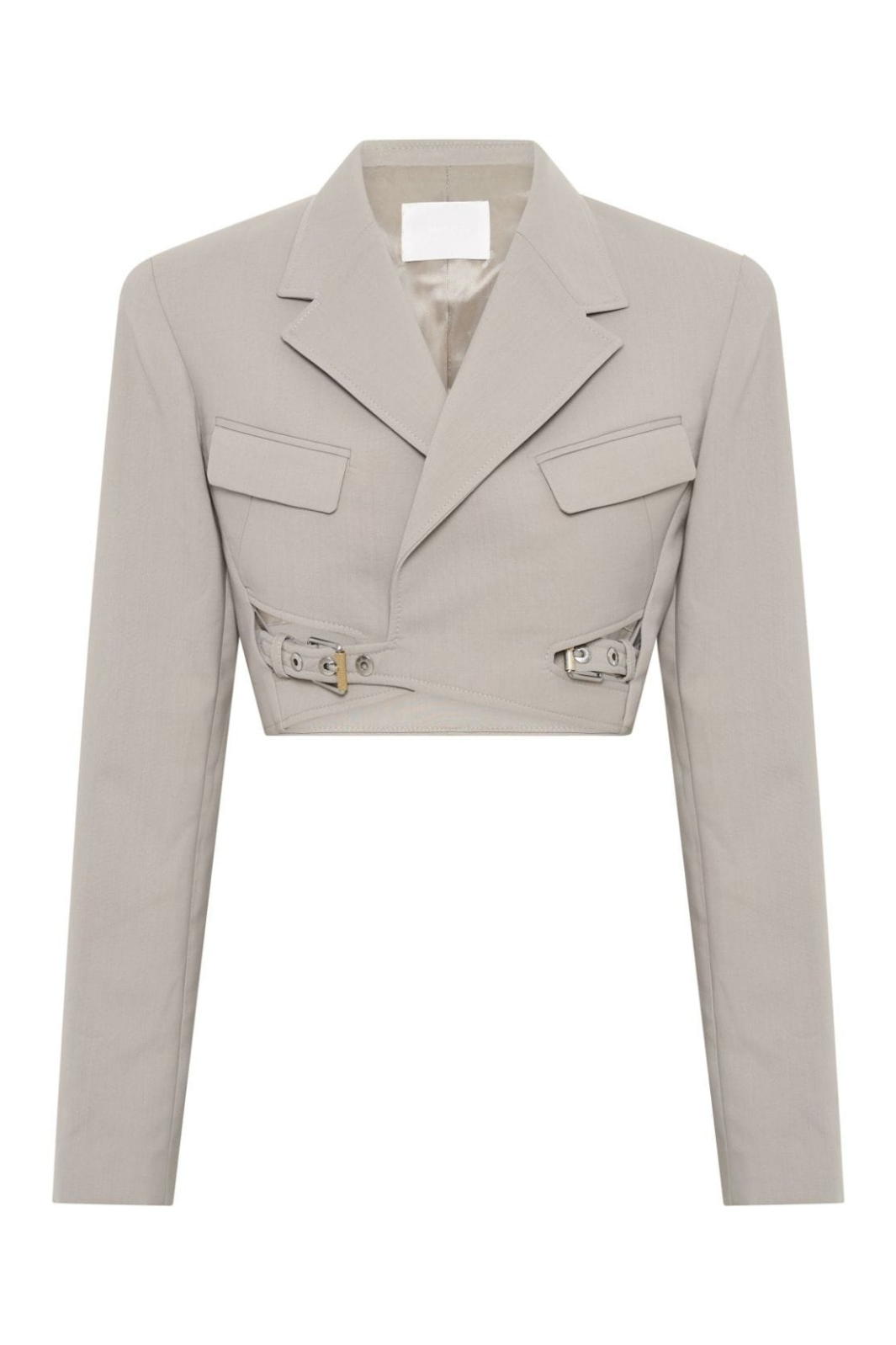 Elevate your style and make a statement with the Jayla Cropped Cutout Blazer in grey. This premium blazer features a unique cutout design that adds a touch of edge to any outfit. The cropped length allows you to show off your waistline, while the luxurious grey color exudes sophistication and elegance. Upgrade your wardrobe with this must-have piece.