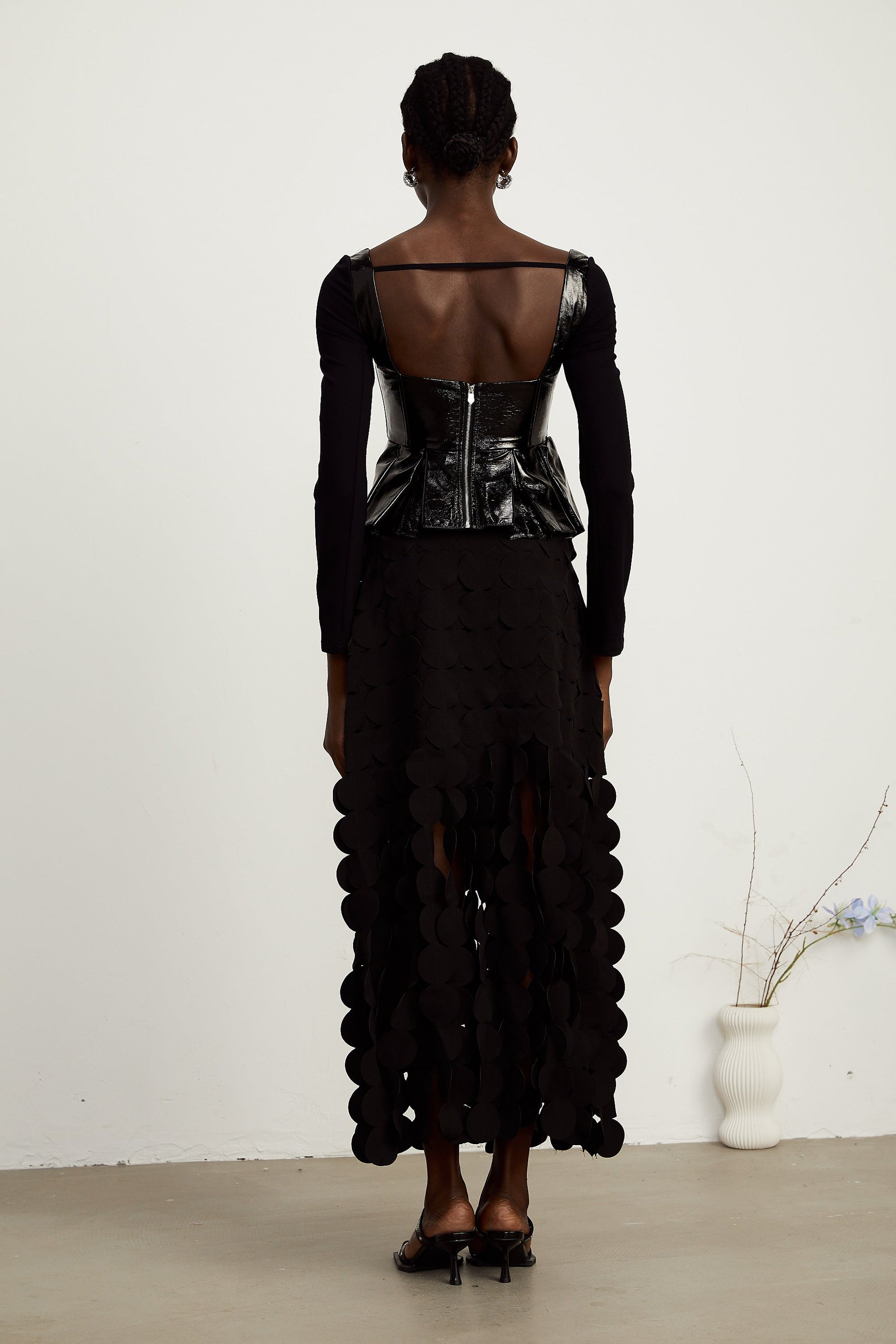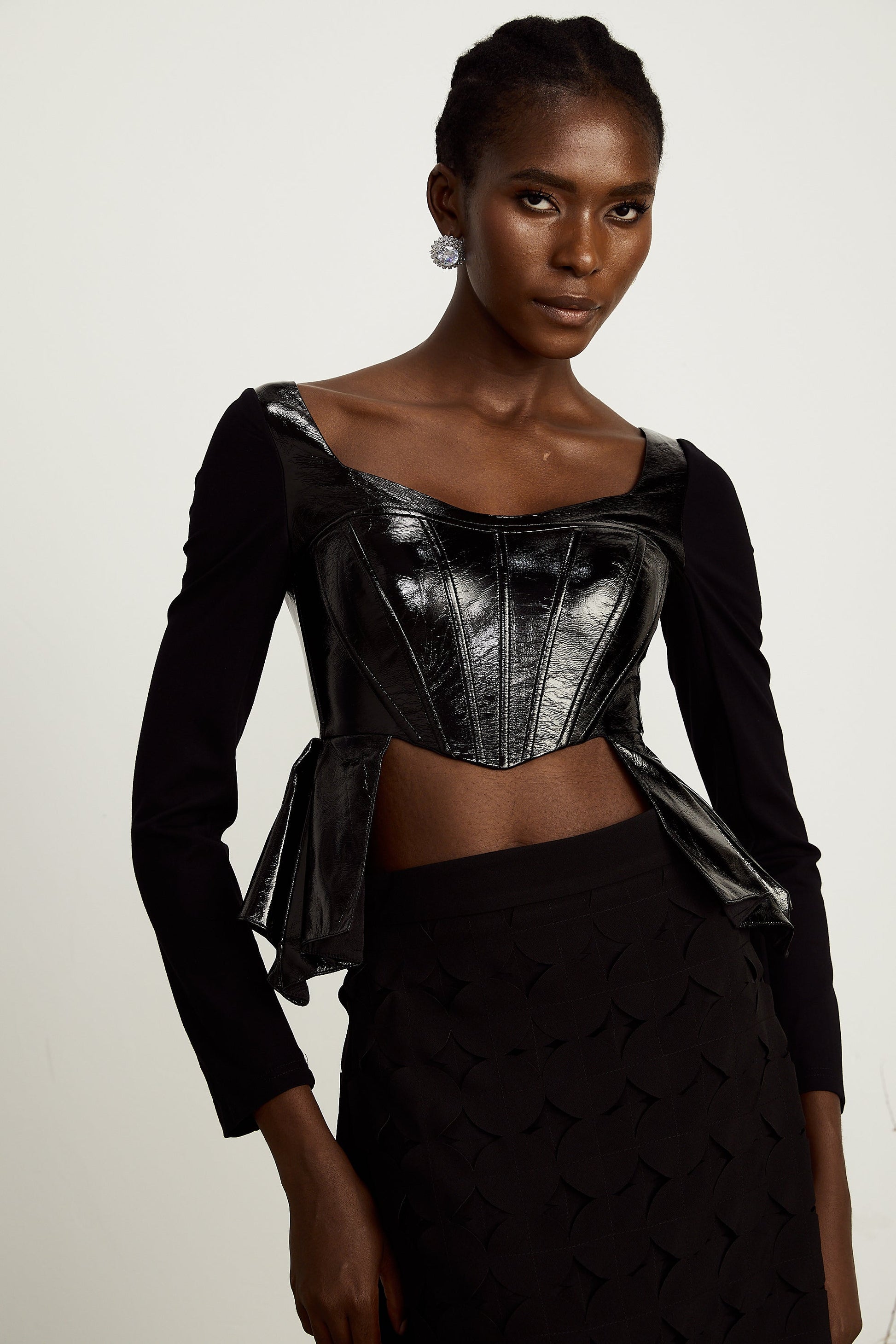 Jeannette faux-leather peplum panelled top