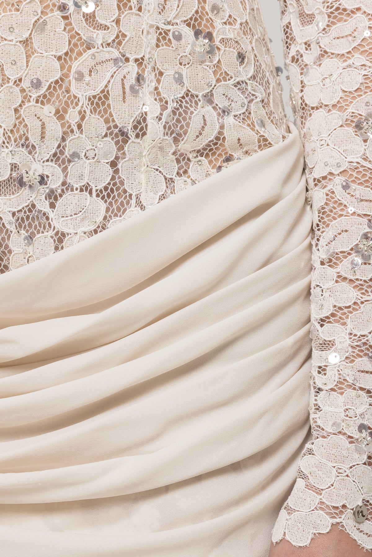 Jonella Sequin Embellished Lace Dreaped Mini Dress