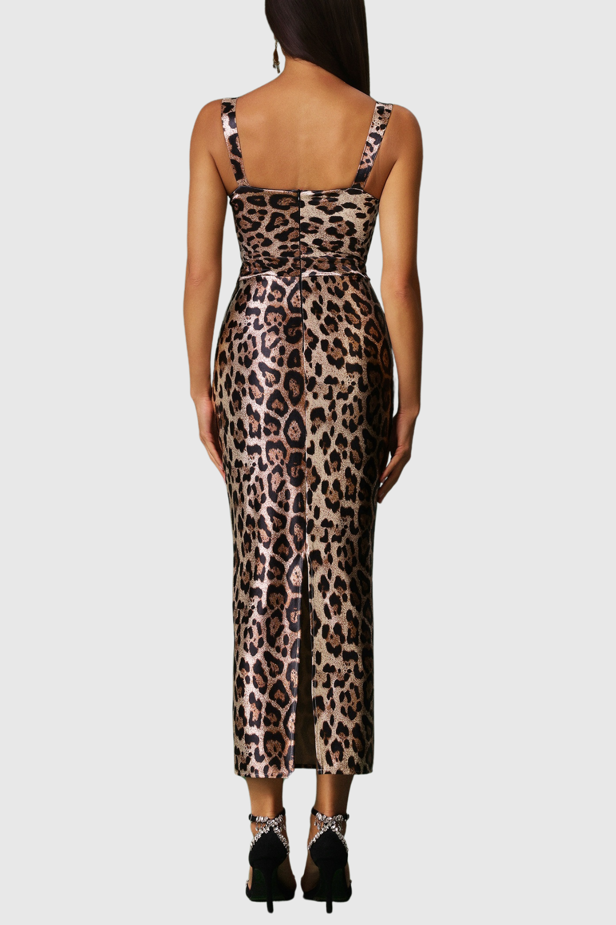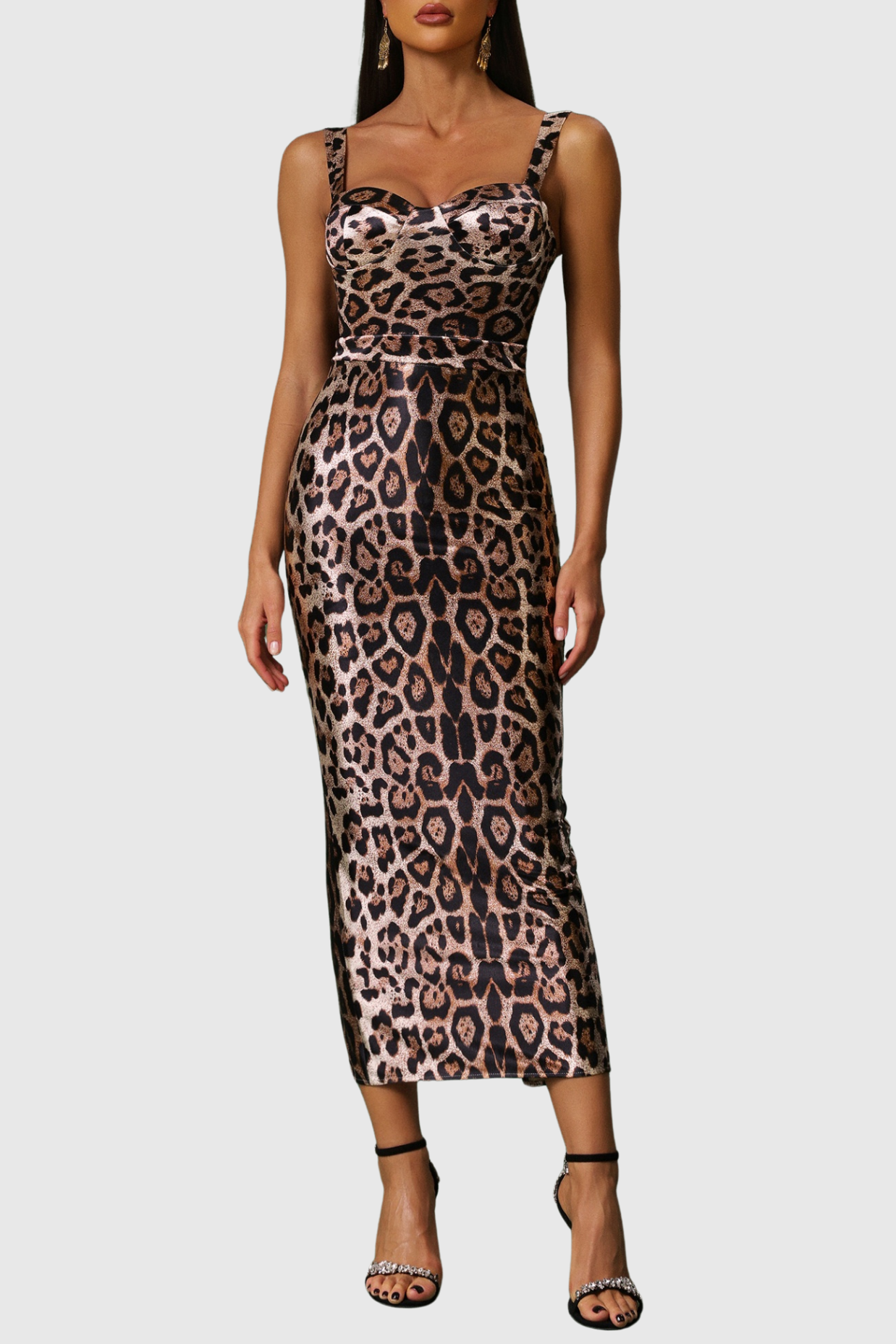 Elevate your wardrobe with the Jonette Leopard Midi Dress, a refined blend of bold print and elegant silhouette. Crafted to flatter, this dress offers a timeless midi length and a sleek fit that enhances your natural shape. Perfect for sophisticated occasions, it pairs effortlessly with heels or boots, making it a versatile choice for day-to-night wear. Embrace confidence and style with this standout piece.
